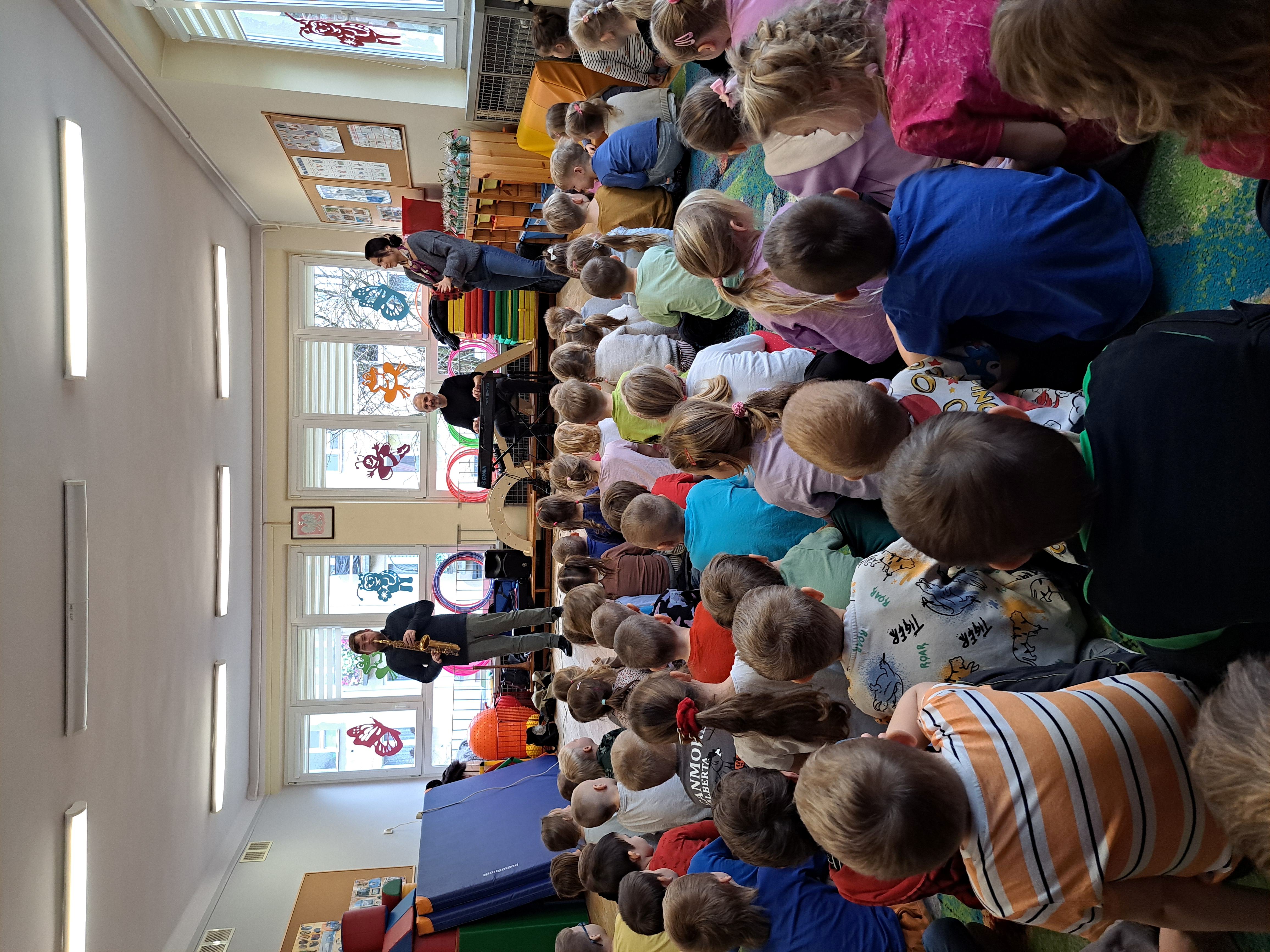 Przedszkolaki zapoznały się z saksofonem, flet macedoński oraz zurlę macedońską. Wszystkim bardzo się podobało.