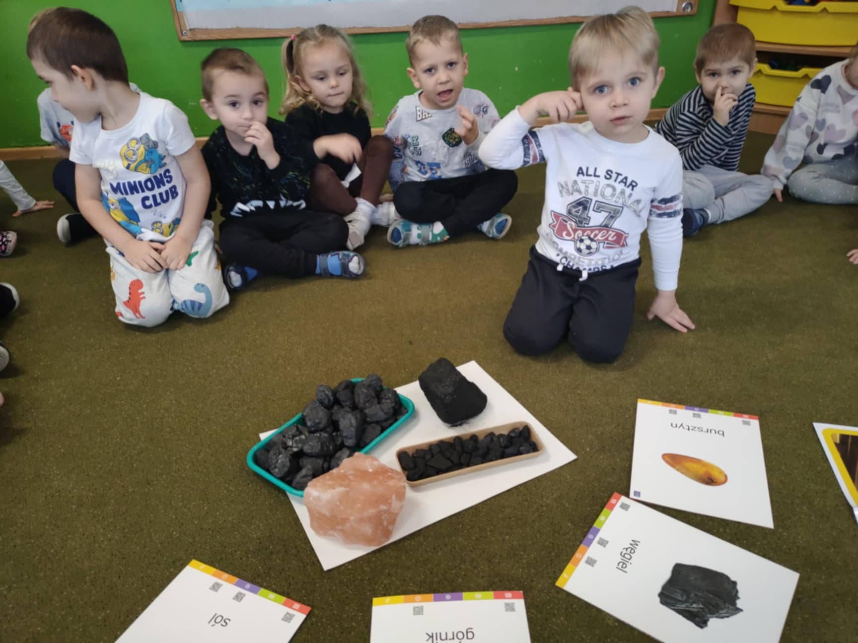 Dzieci z 1 grupy obchodziły Barbórkę. Na zajęciach dowiedziały się o pracy górnika i wydobywaniu z kopalni węgla oraz soli.