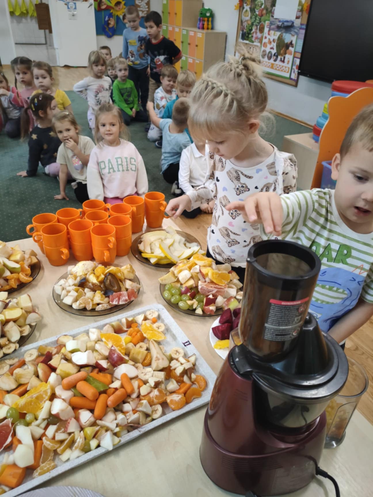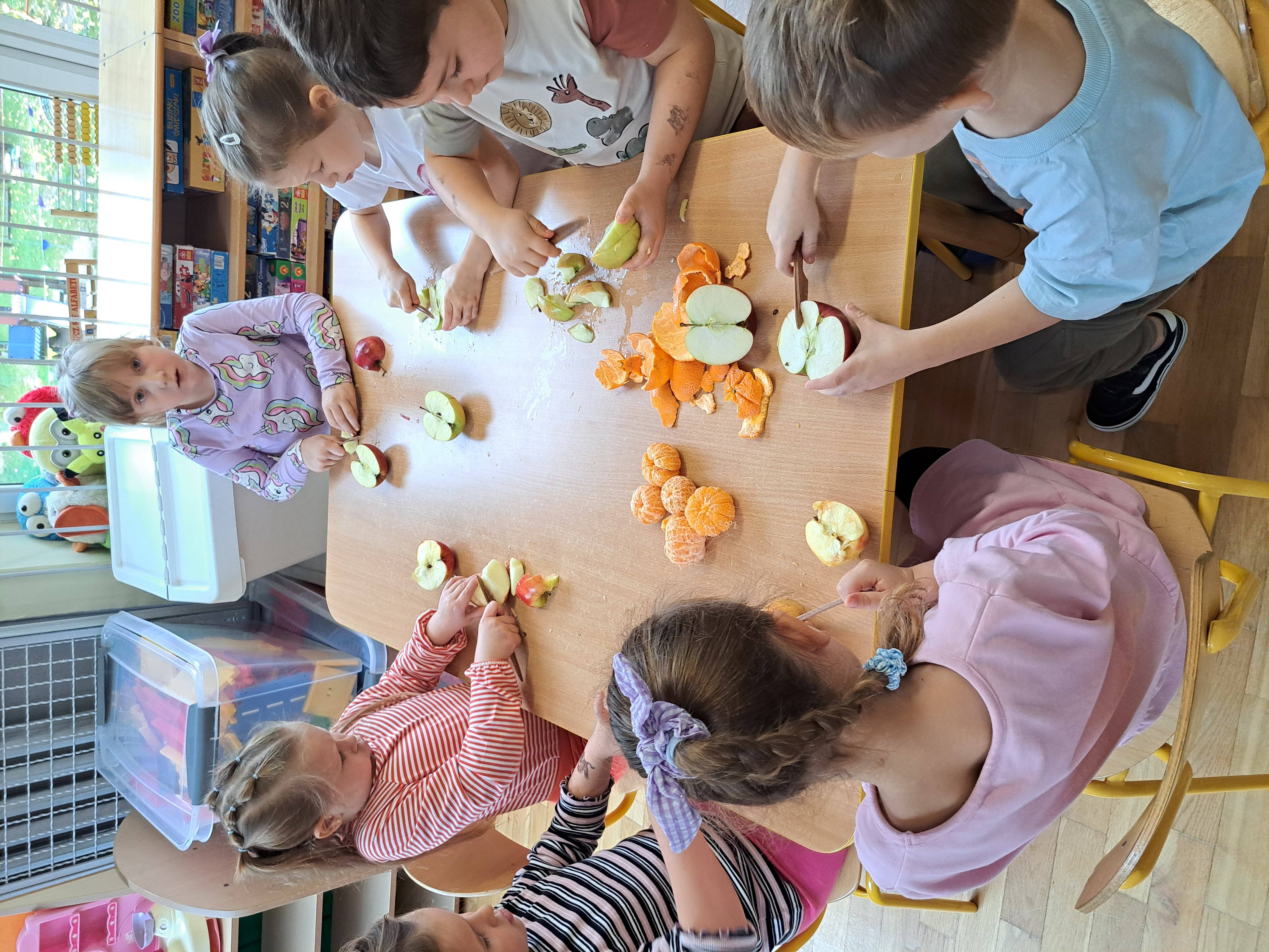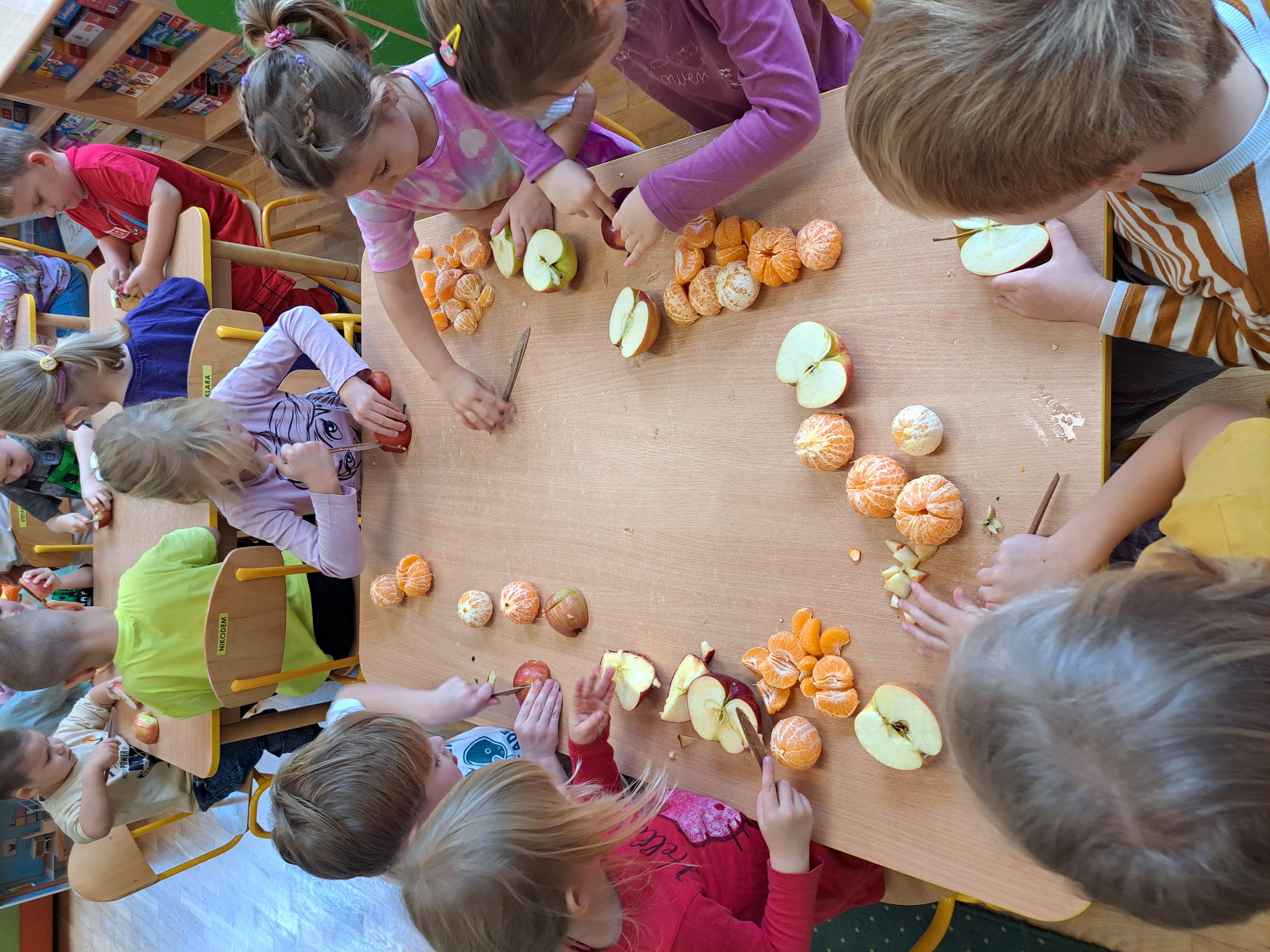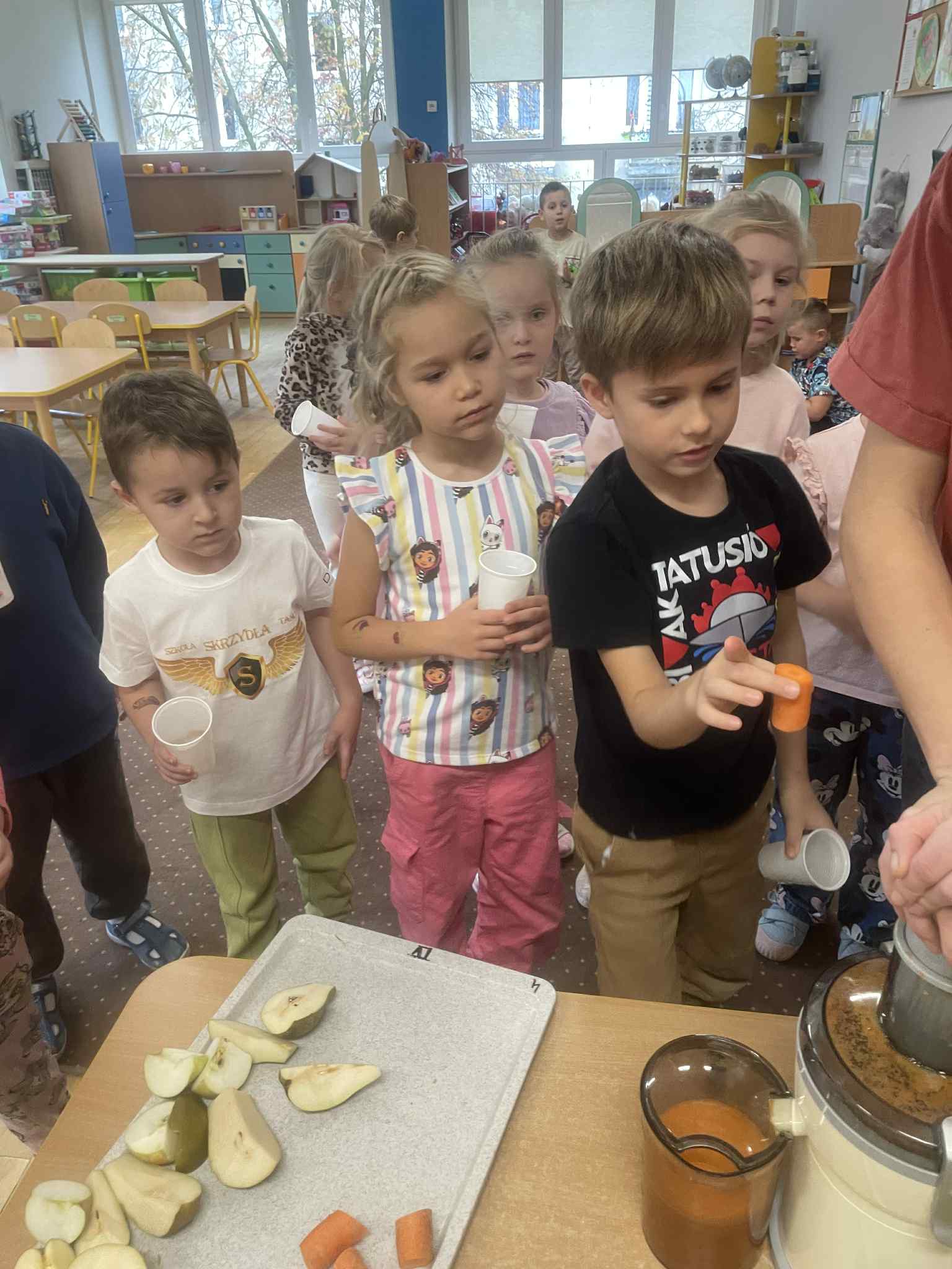 Dzieci samodzielnie kroiły owoce i wkładały do wyciskarki, próbując każdego smaku. Było pysznie!