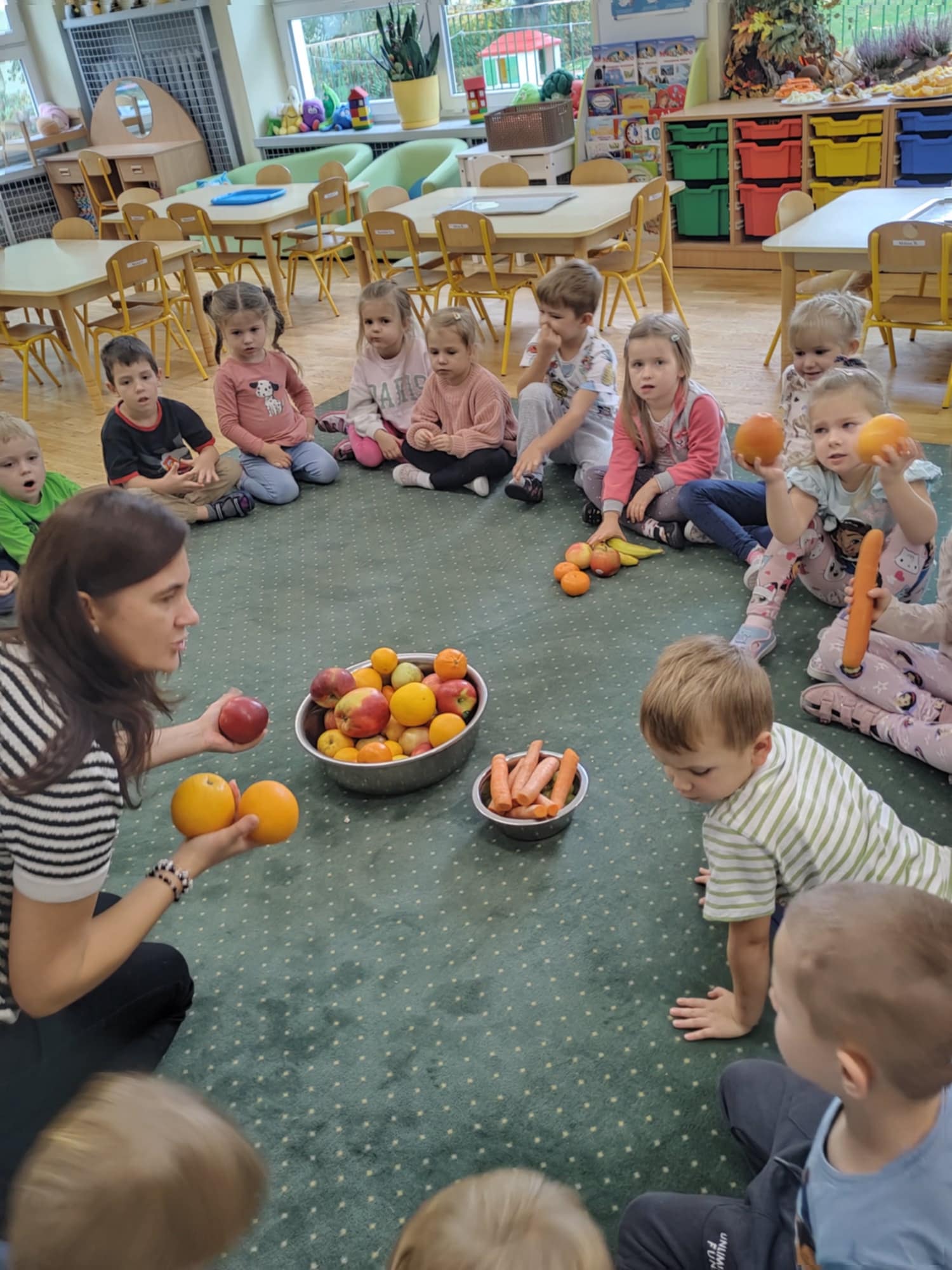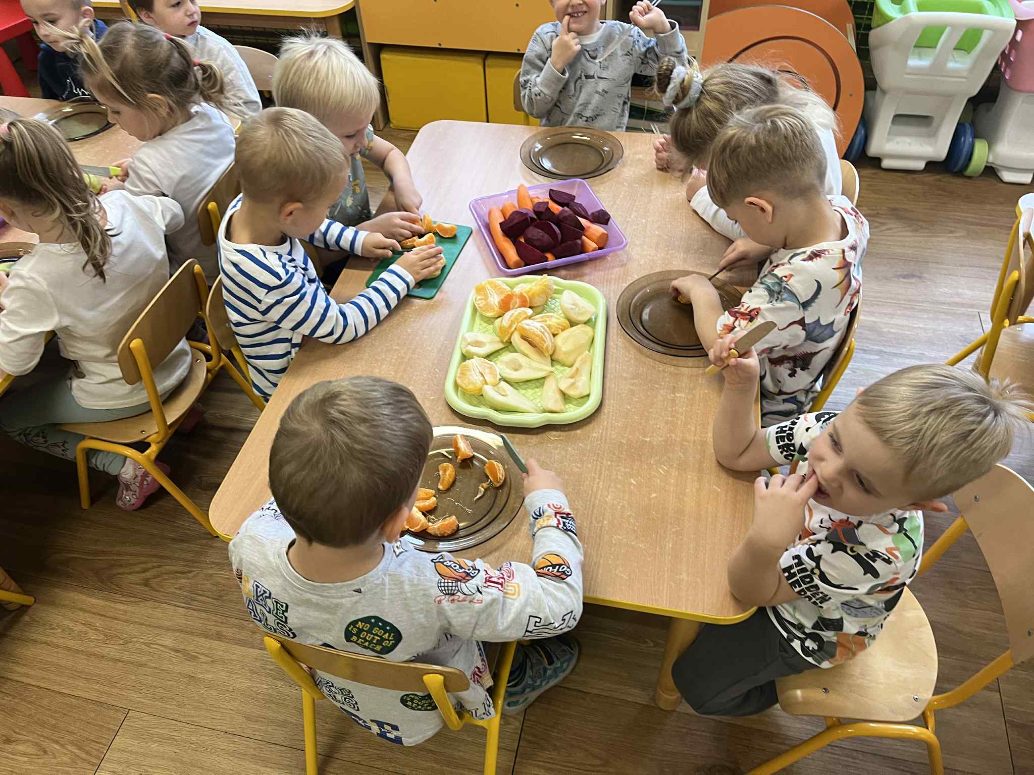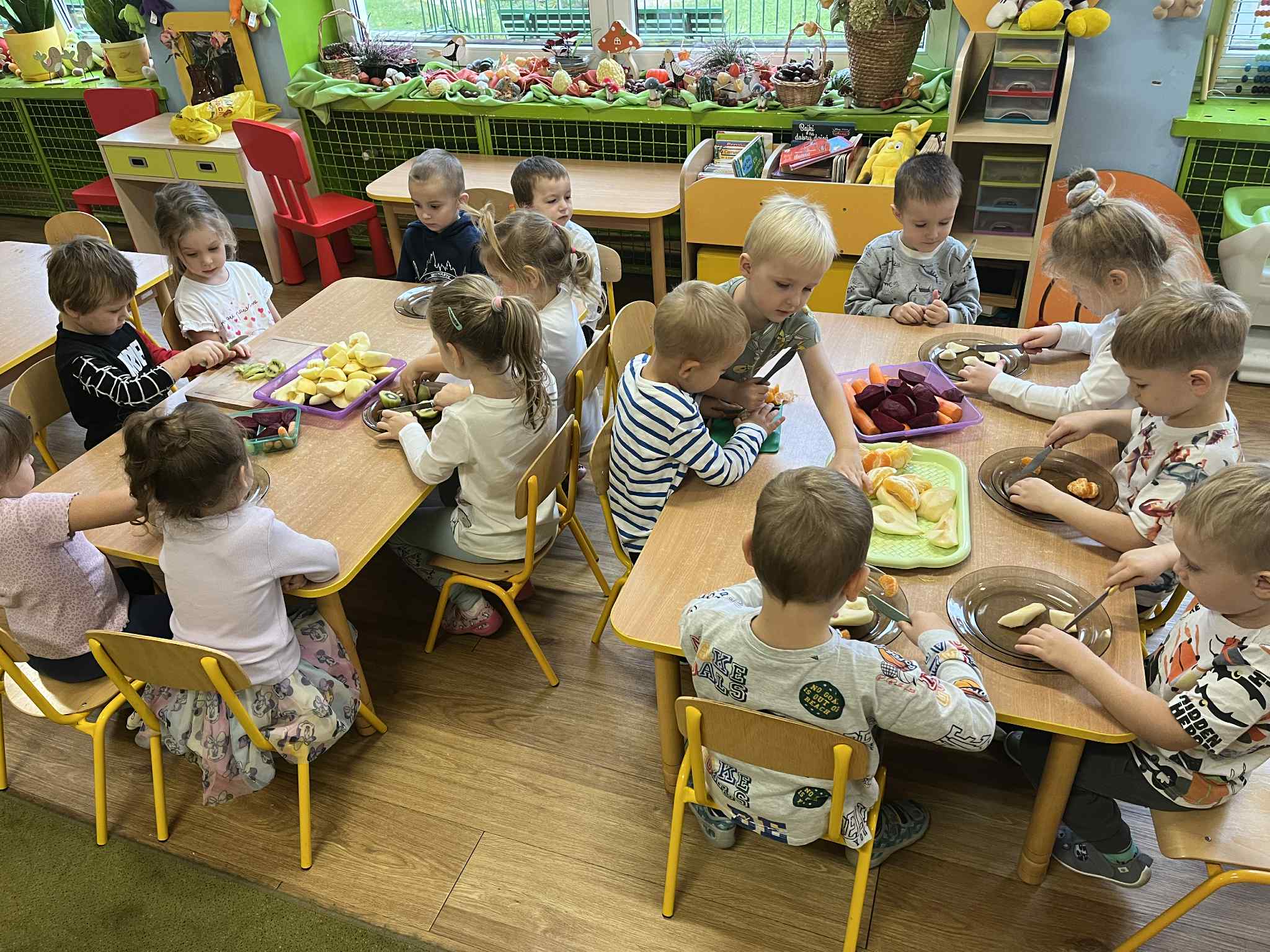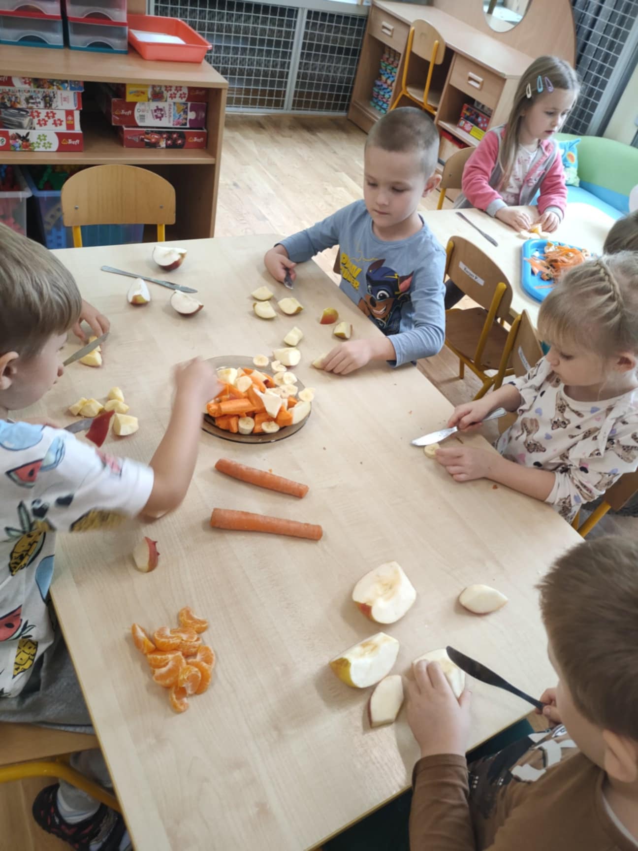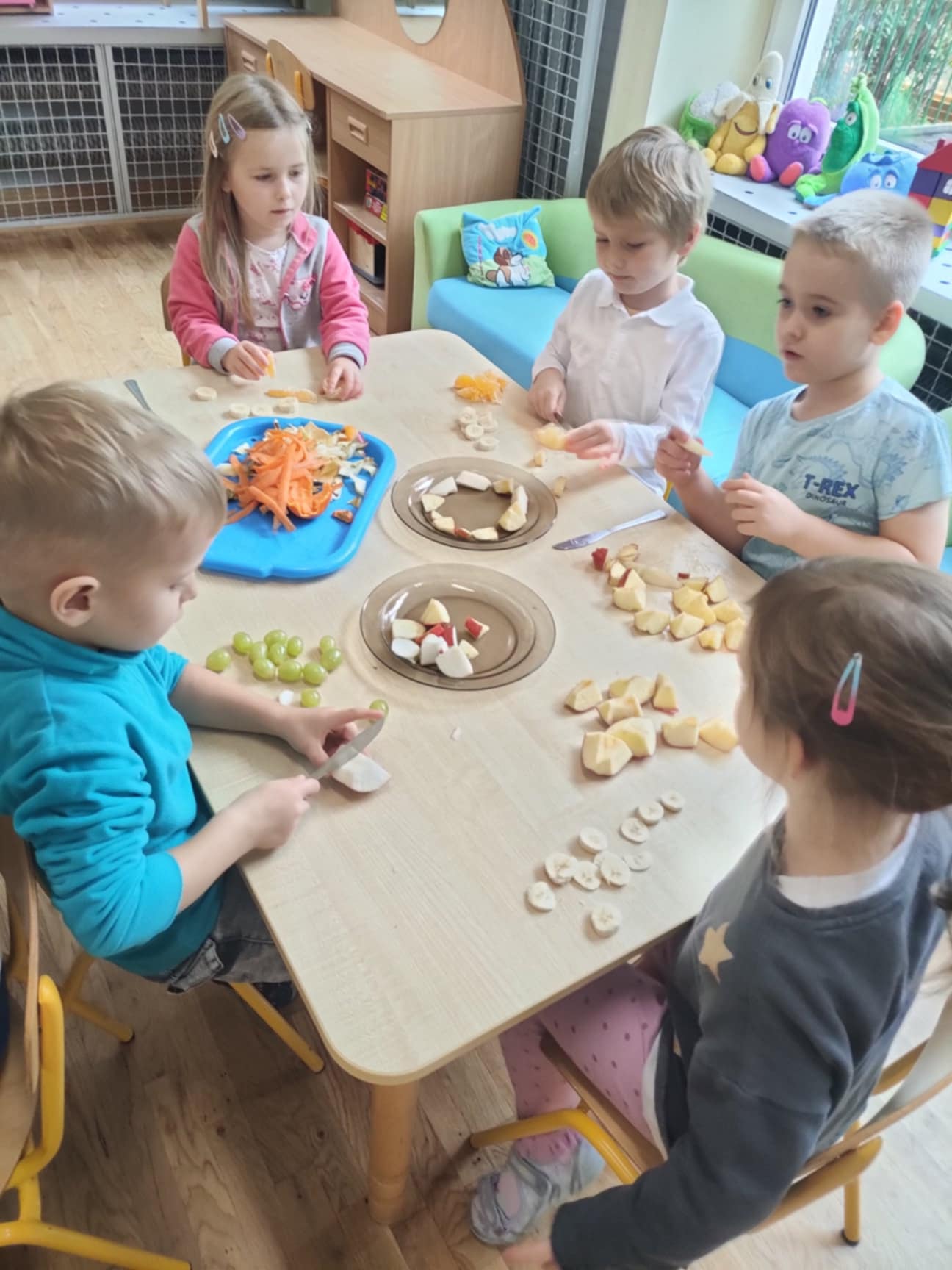 Dzieci samodzielnie kroiły owoce i wkładały do wyciskarki, próbując każdego smaku. Było pysznie!