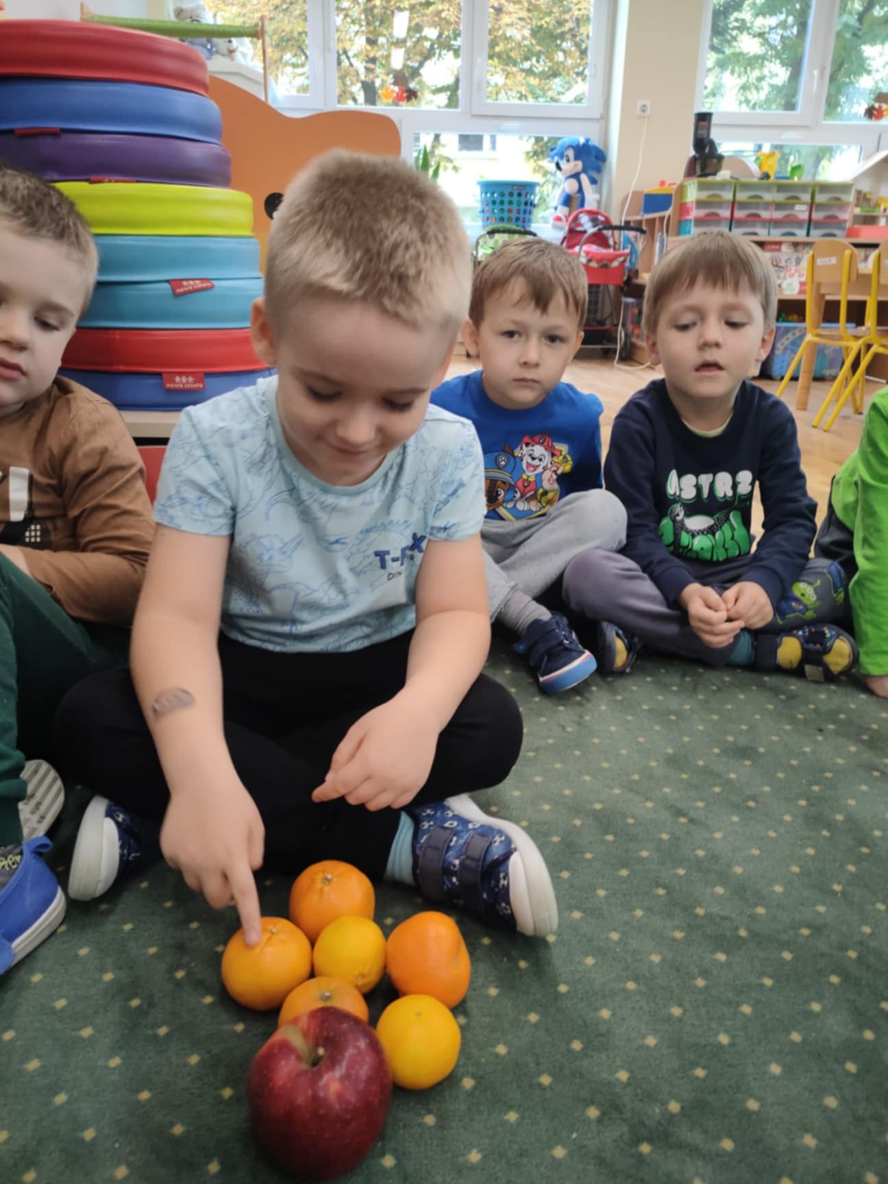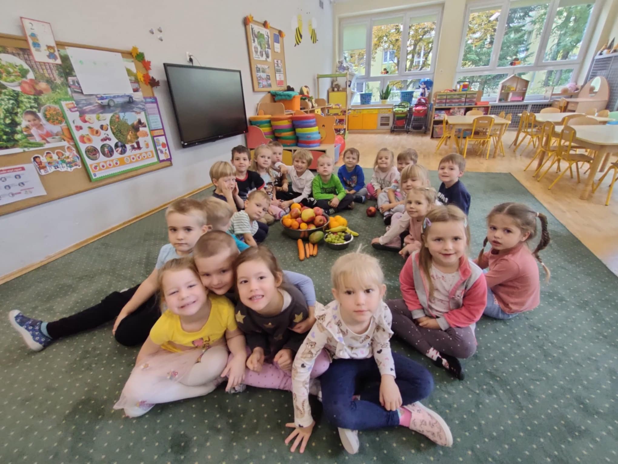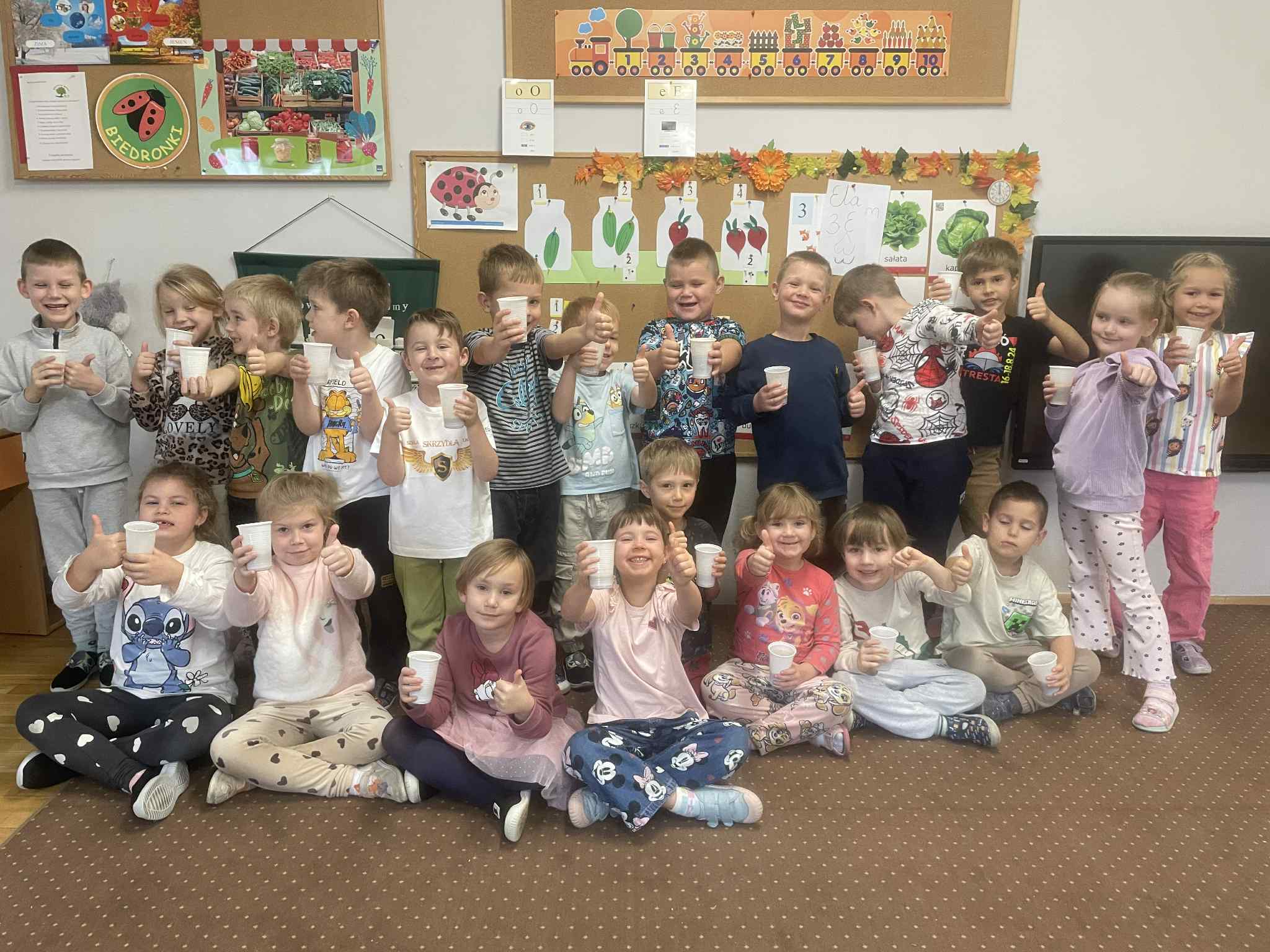 Na podsumowanie całego tygodnia zajęć przedszkolaki dzisiaj wykonały test wiedzy, kolorowały ulotki informacyjne o zdrowym odżywianiu dla rodziców oraz przygotowały świeżo wyciskane soki.