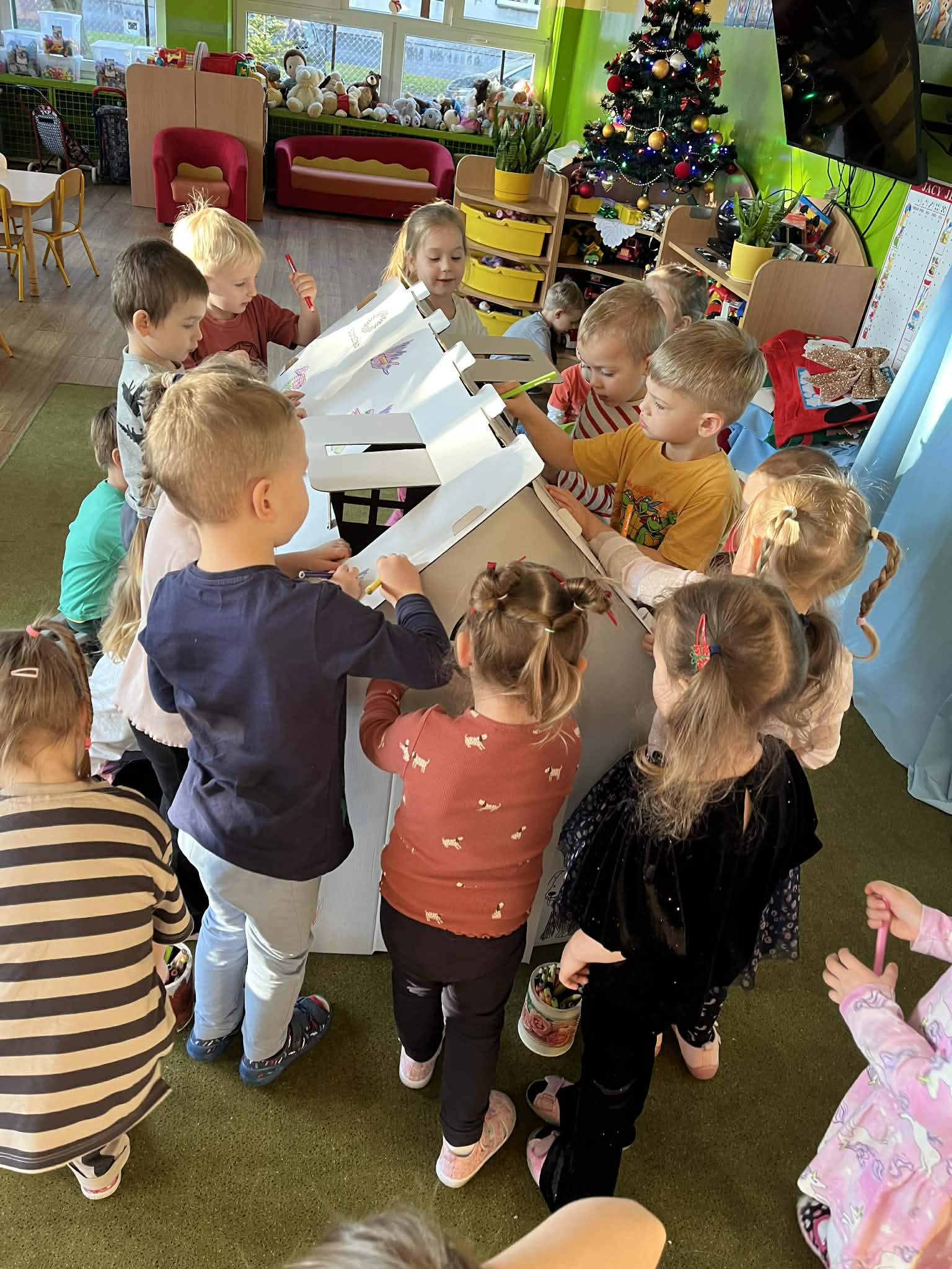 Dzieci pracowały twórczo i z pomocą nauczycielki stworzyły sobie świetne miejsce do zabawy.