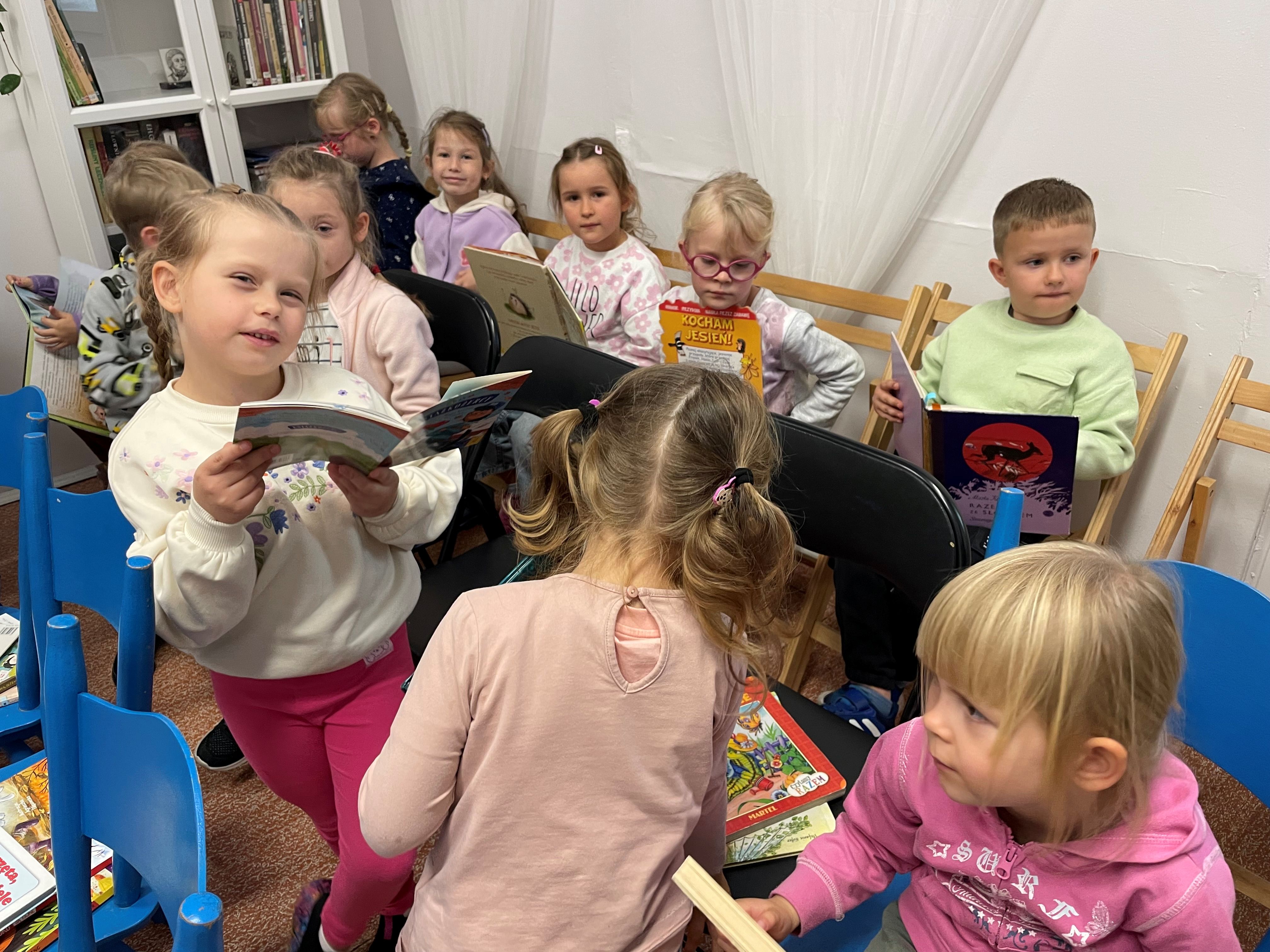Tam zapoznały się ze zbiorami biblioteki, czytelnią i sposobem wypożyczania książek.