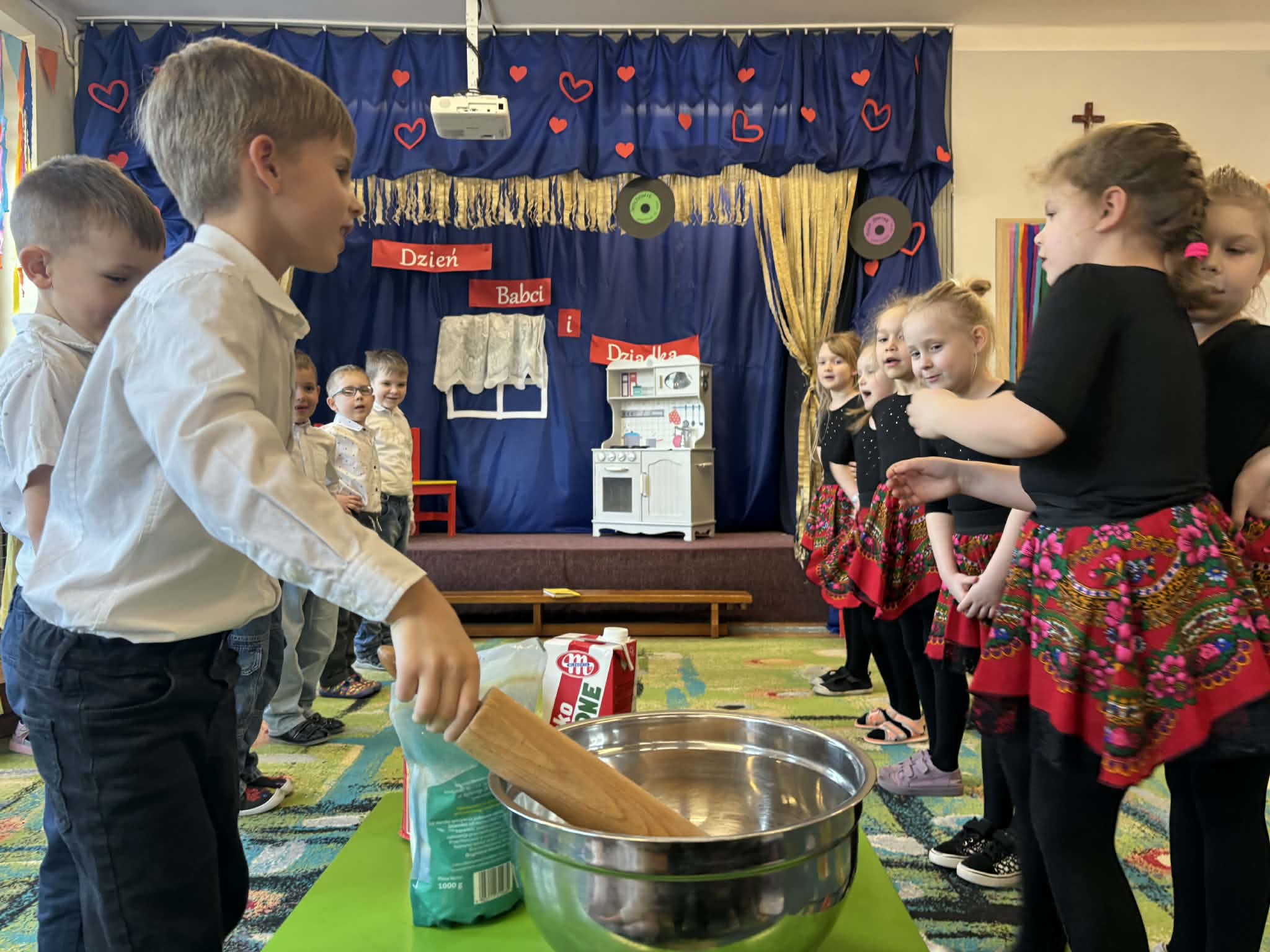 Dzieci wcieliły się w role rodziców i dziadków, pokazując, jak wyglądała codzienność bez smartfonów i internetu. Były rozmowy przy stole, wspólne oglądanie telewizji, a także zabawy, które kiedyś cieszyły się ogromną popularnością.