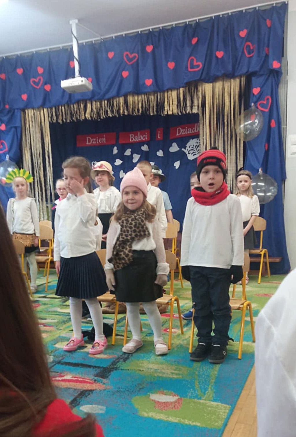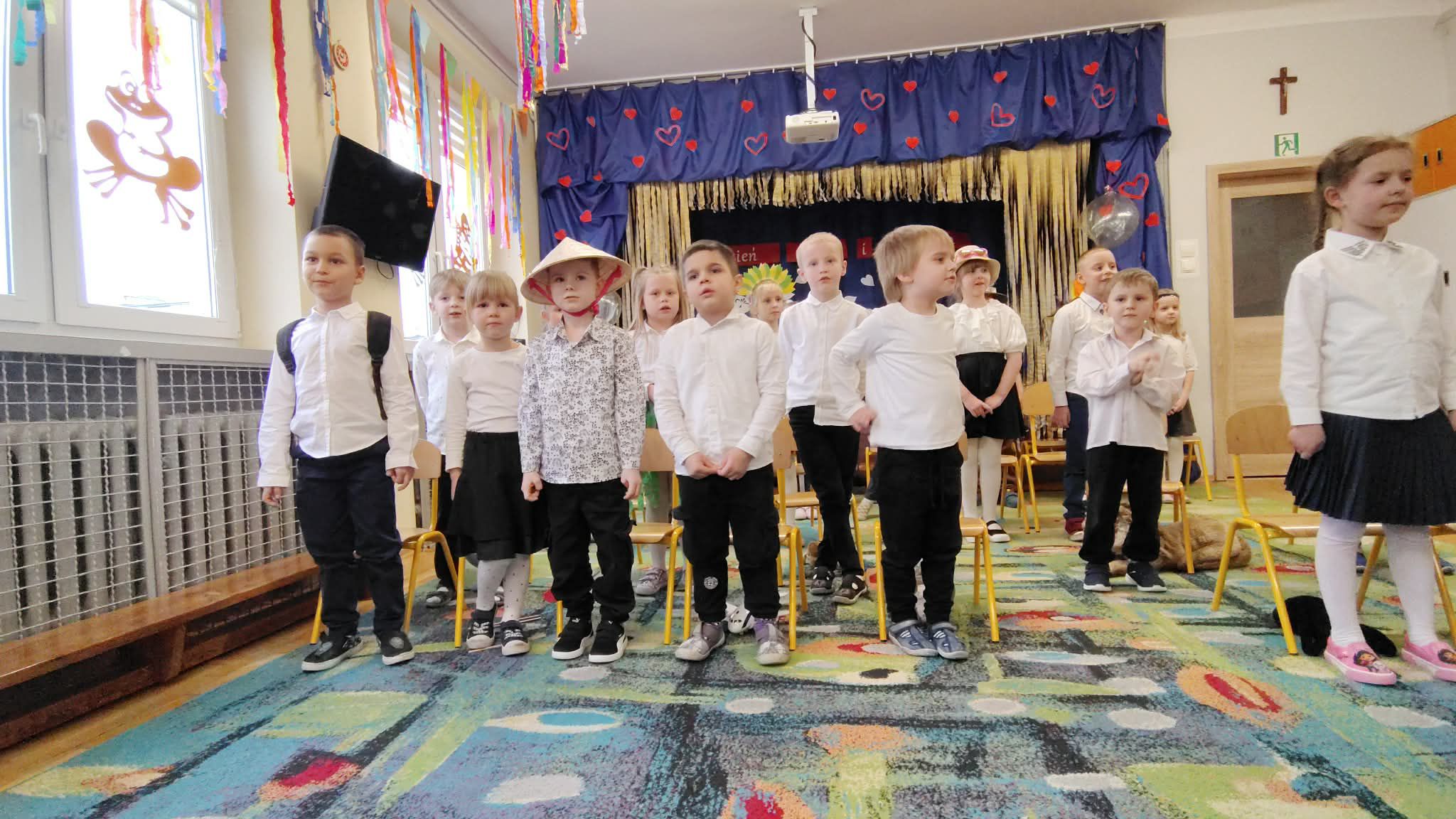 Podczas uroczystości przedszkolaki zaprezentowały przygotowany występ – były piosenki, krótkie scenki oraz tańce, które wywołały wiele uśmiechów i wzruszeń wśród zaproszonych gości.