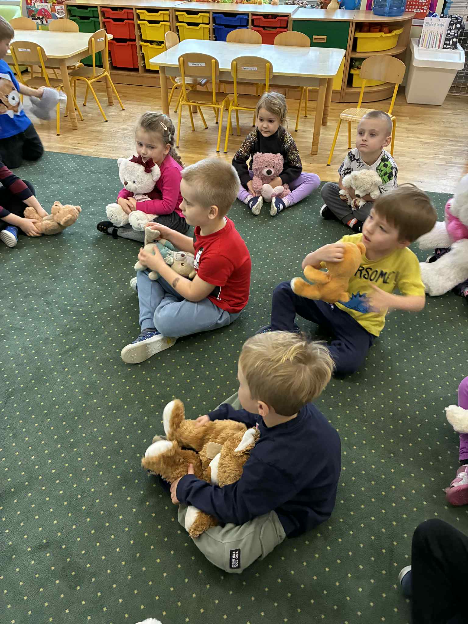 W naszym przedszkolu obchodziliśmy radosny Dzień Pluszowego Misia. Każde dziecko opowiedziało jak jego miś ma na imię oraz skąd się wziął.