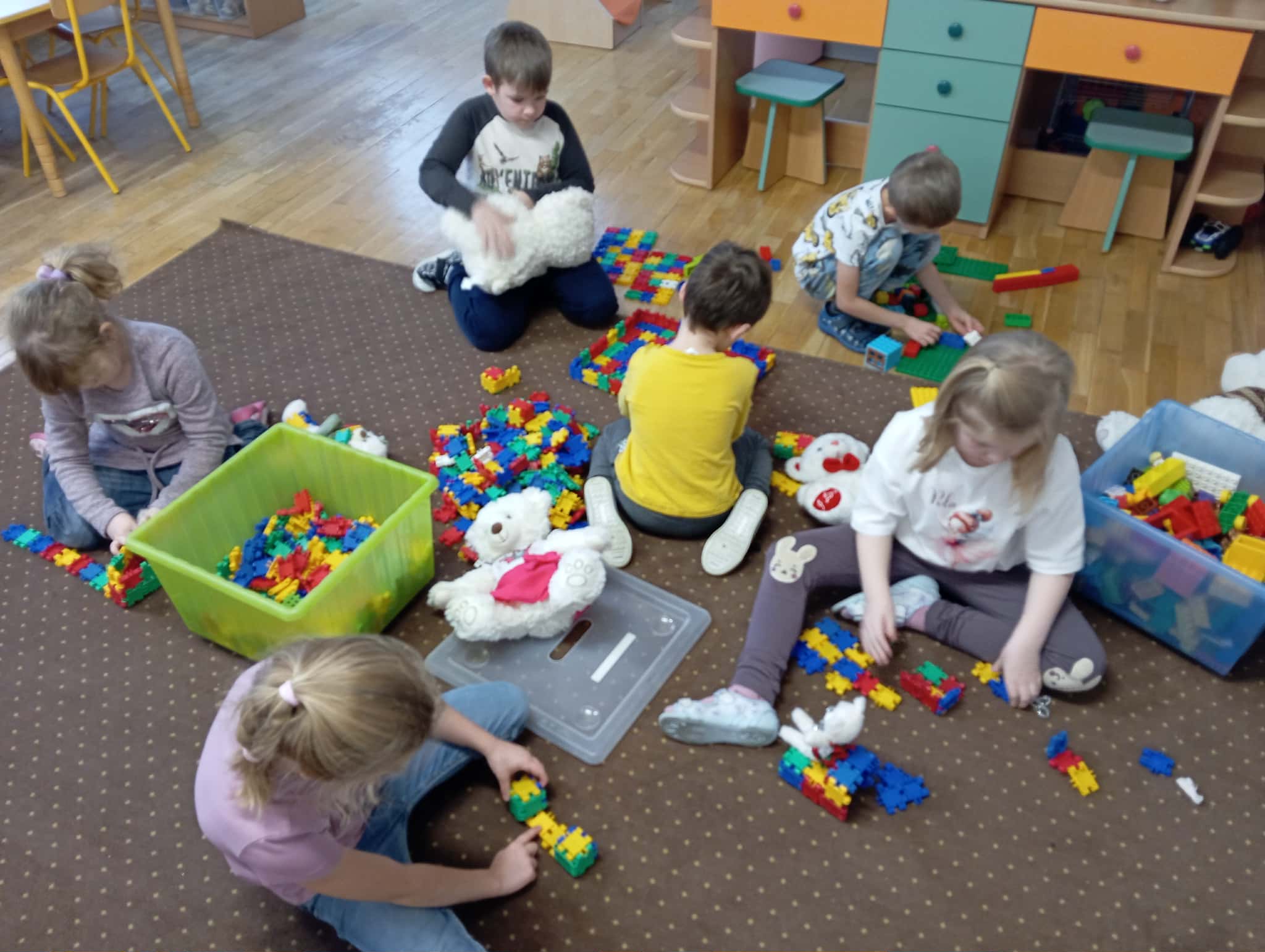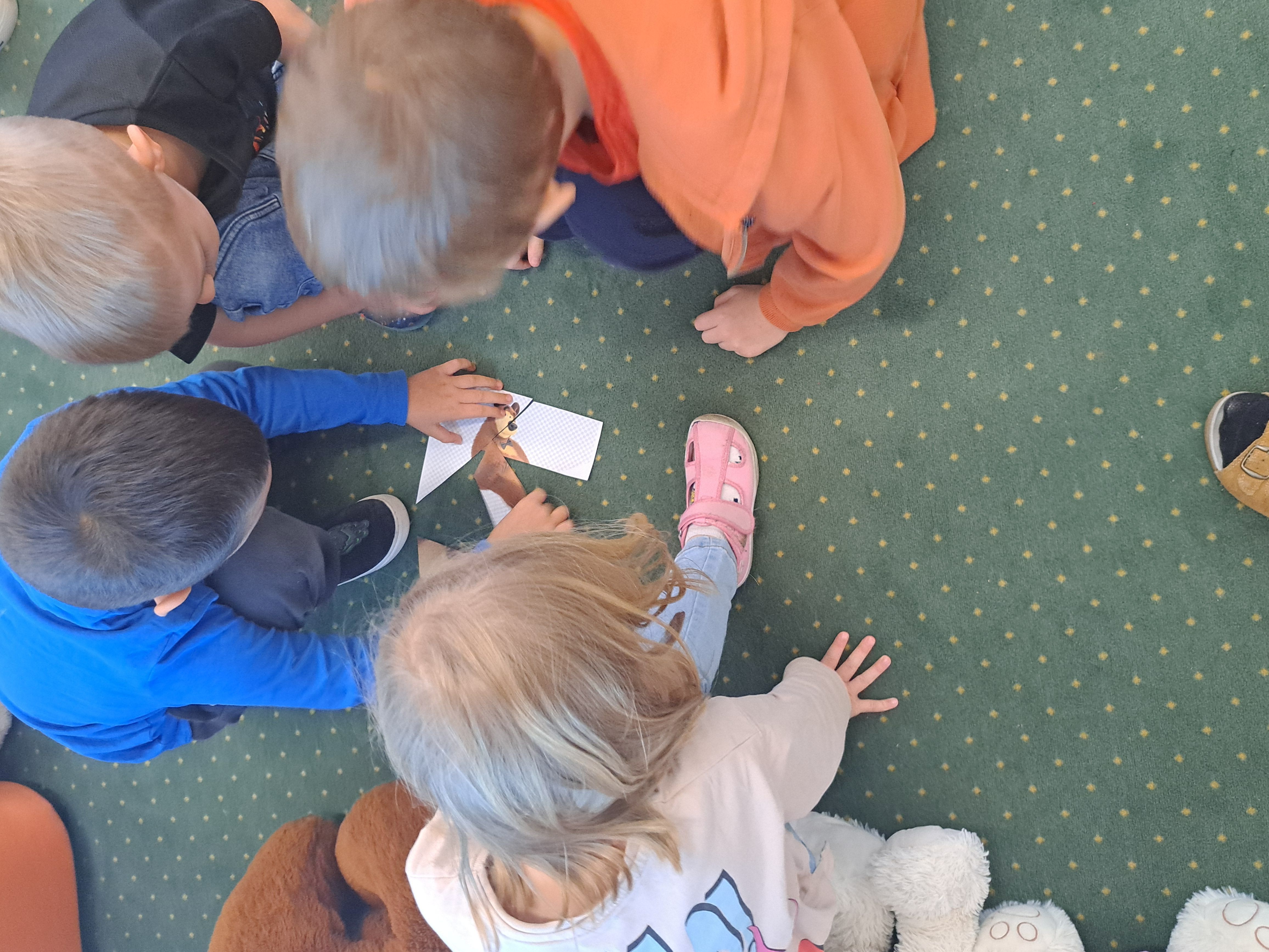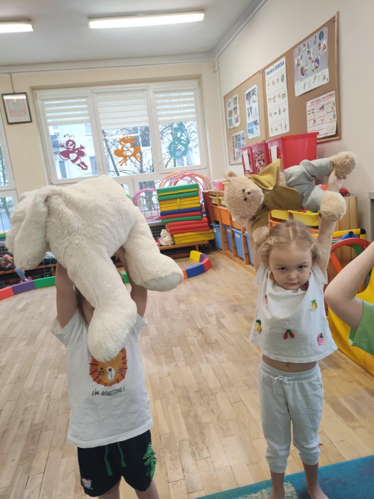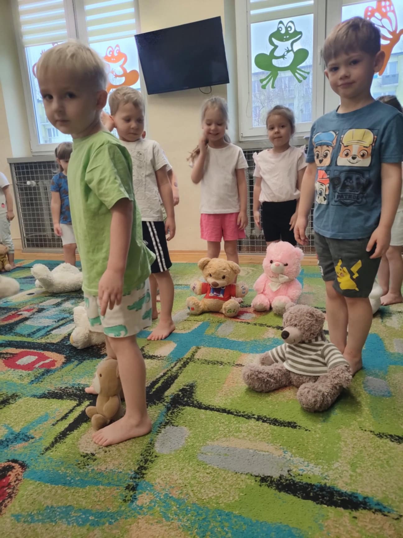 Podczas zajęć przedszkolaki z zaangażowaniem układały puzzle z wizerunkami misiów, ćwicząc spostrzegawczość i współpracę. Nauczyły się prostej zabawy o samotnym misiu, który szukał przyjaciół, "karmiły" misia podczas rzucania woreczkami/piłeczkami.