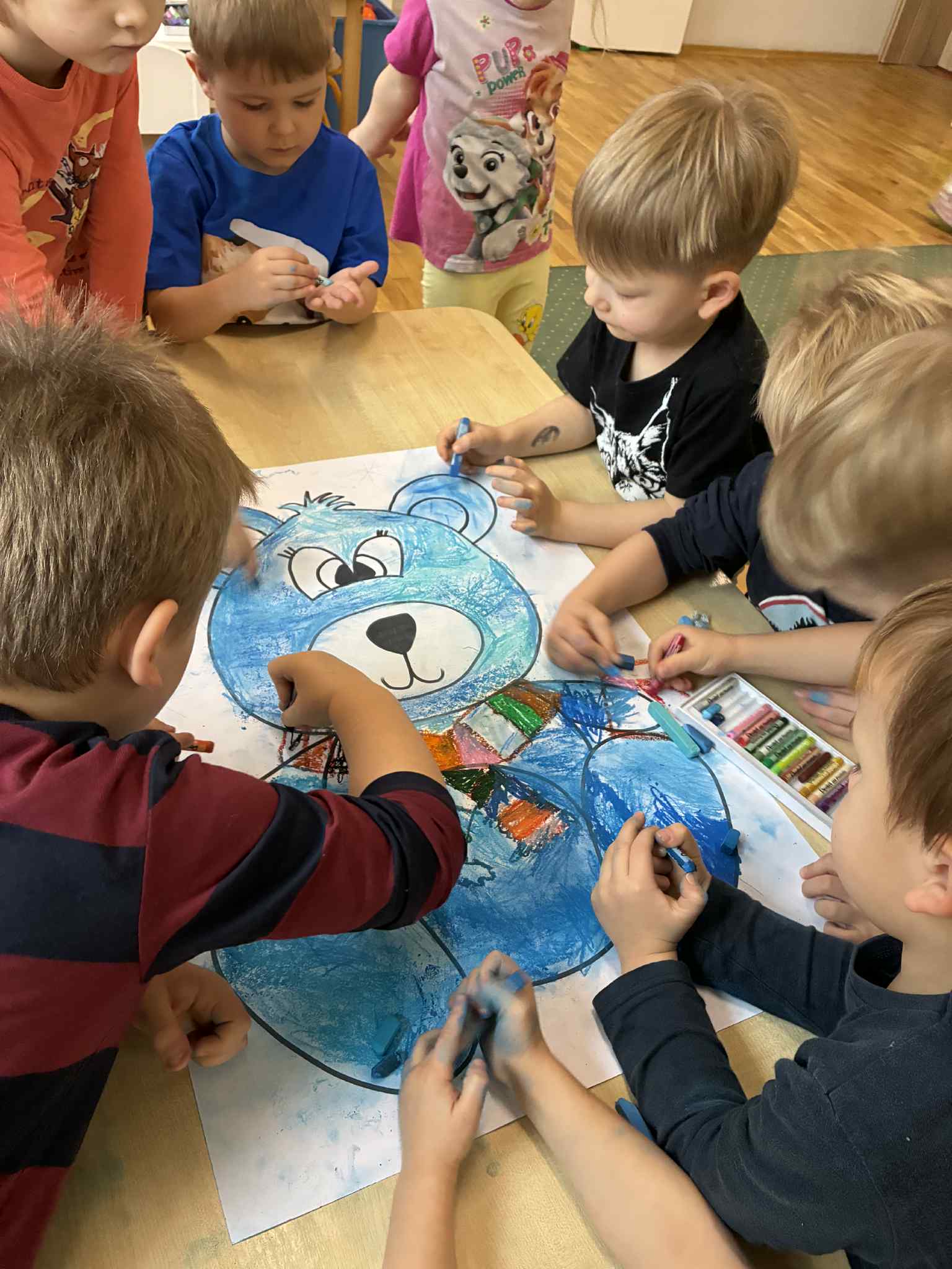 Na zakończenie dnia każda grupa przygotowała własnego misia przedstawionego w wylosowanej porze roku. Dzieci stworzyły barwne prace plastyczne przedstawiające misia zimowego, wiosennego, letniego i jesiennego.