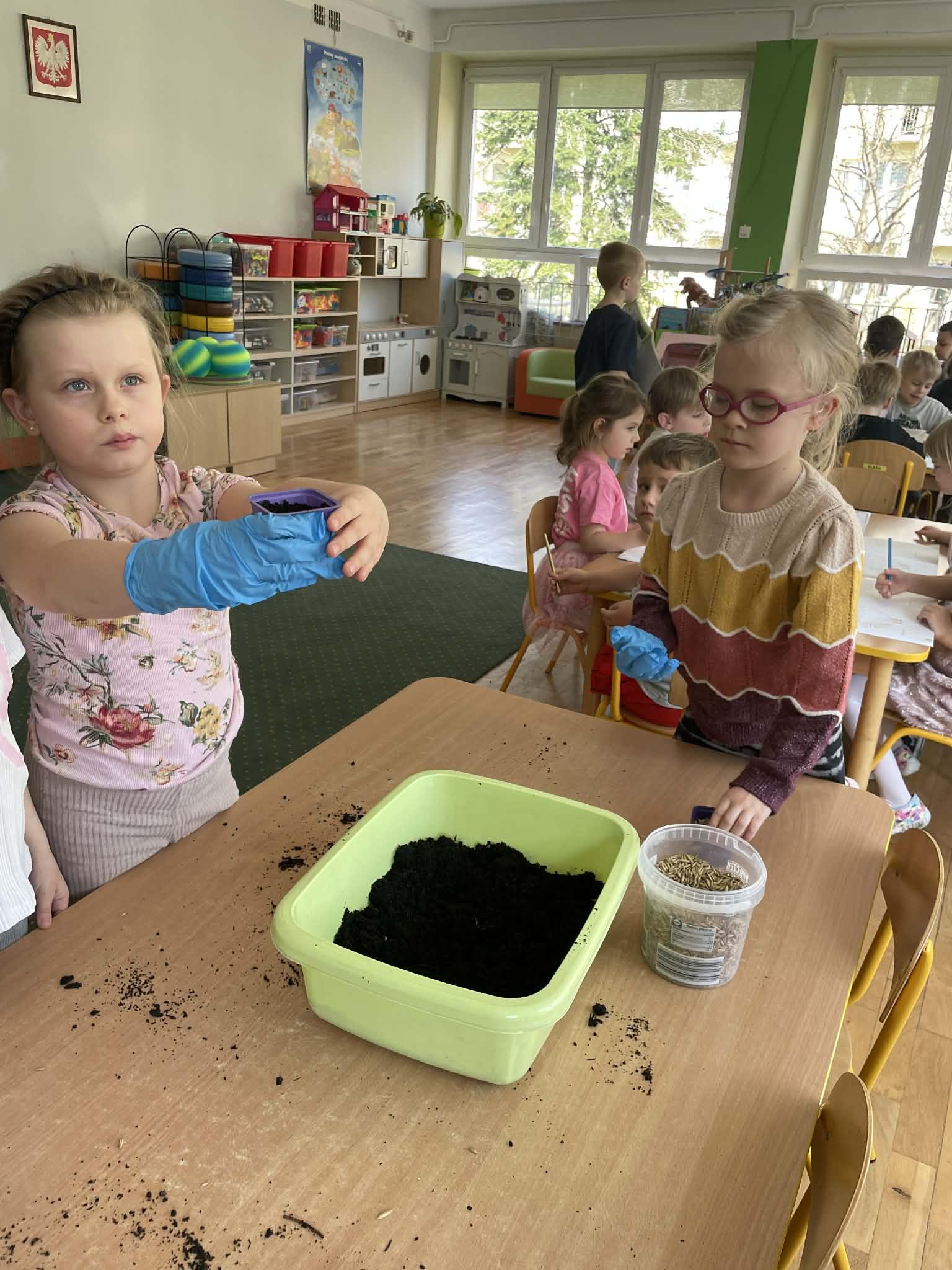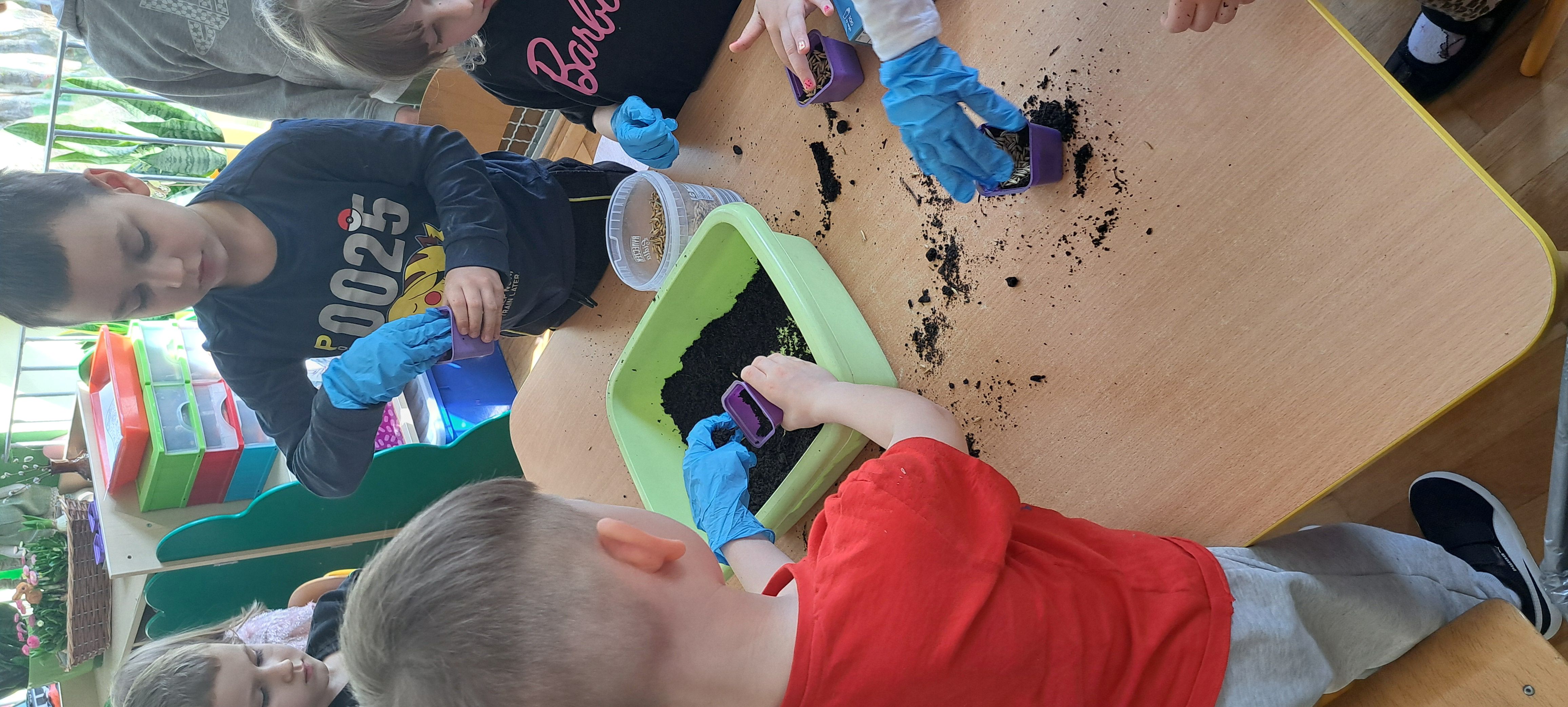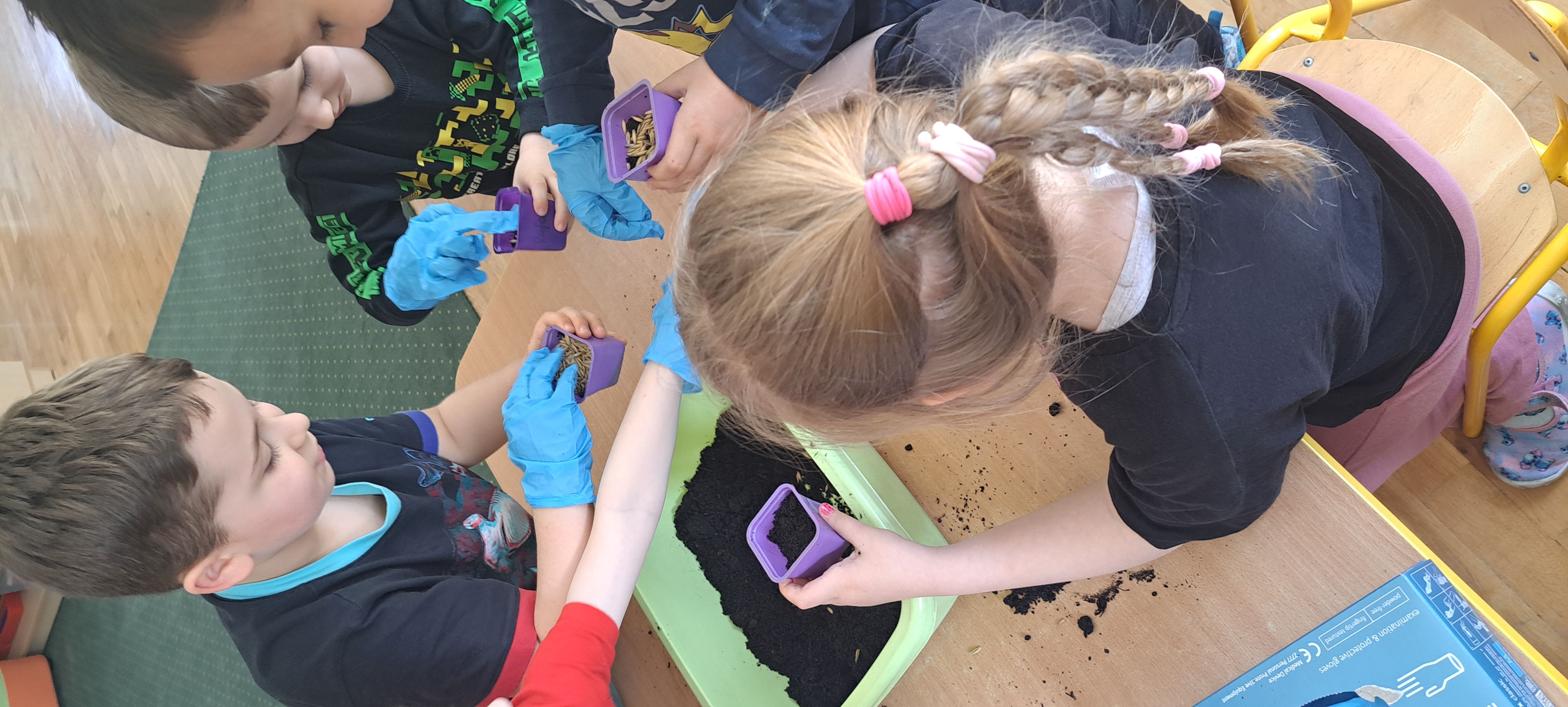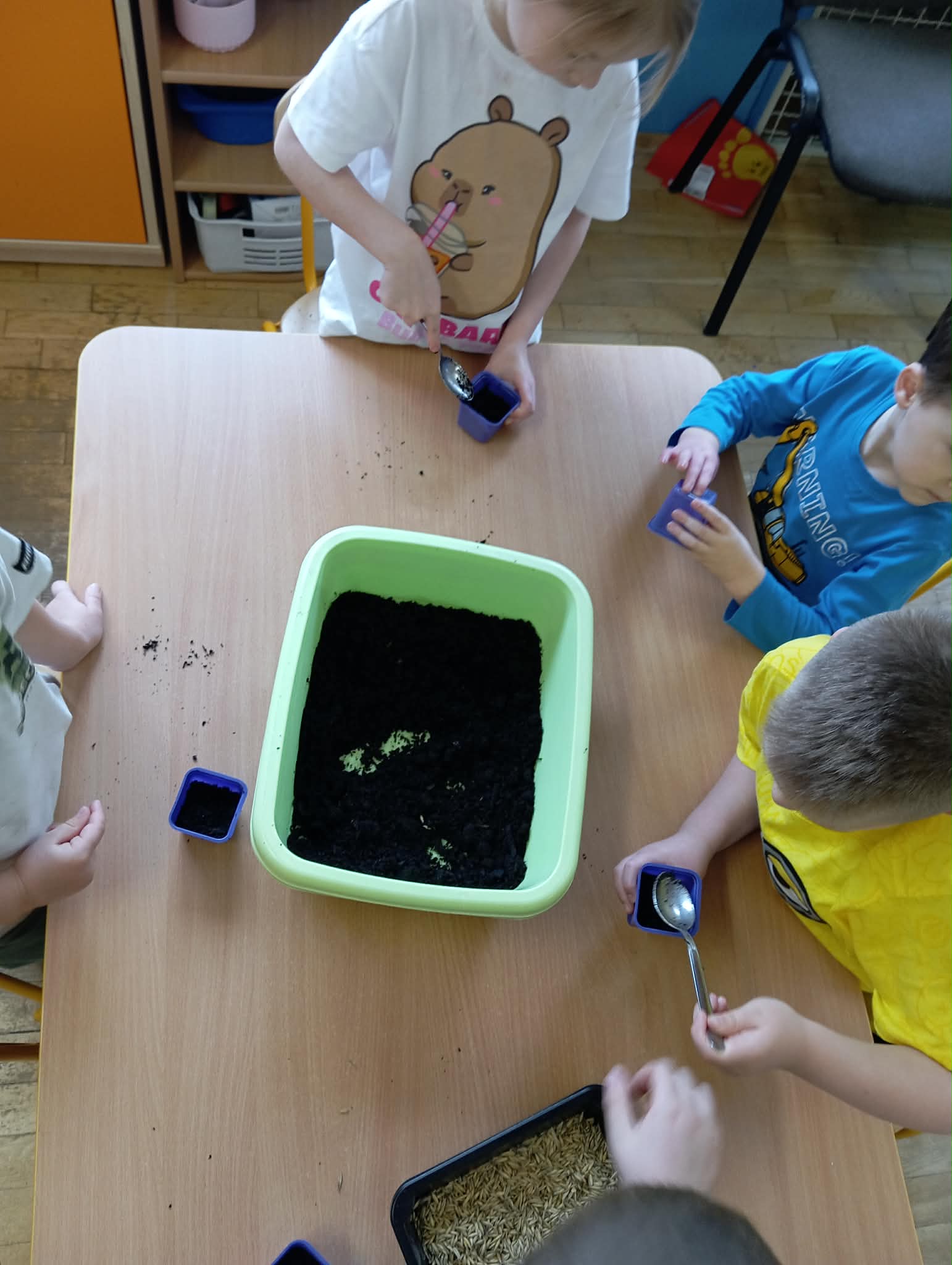 Podczas zajęć przedszkolaki samodzielnie przygotowywały ziemię, wysiewały nasiona i obserwowały, jak rośliny zaczynają kiełkować. Zajęcia te były doskonałą okazją do nauki o przyrodzie, cyklu życia roślin oraz odpowiedzialności za ich pielęgnację.