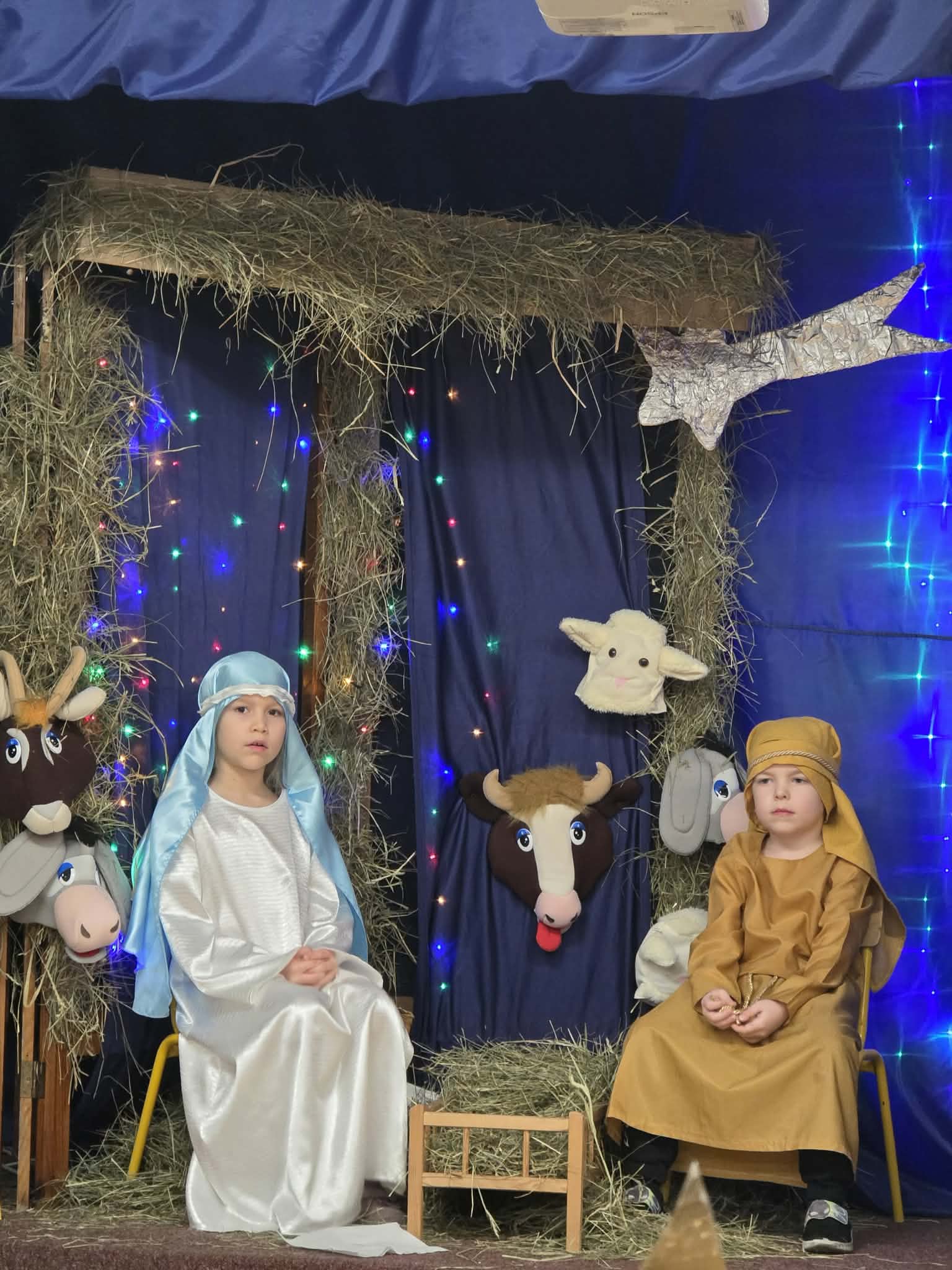 Dzieci z wielkim zaangażowaniem wcieliły się w swoje role – aniołków, pasterzy, Maryi, Józefa oraz Trzech Króli. Ubrane w kolorowe, starannie przygotowane stroje, z dumą prezentowały się przed zgromadzoną publicznością.