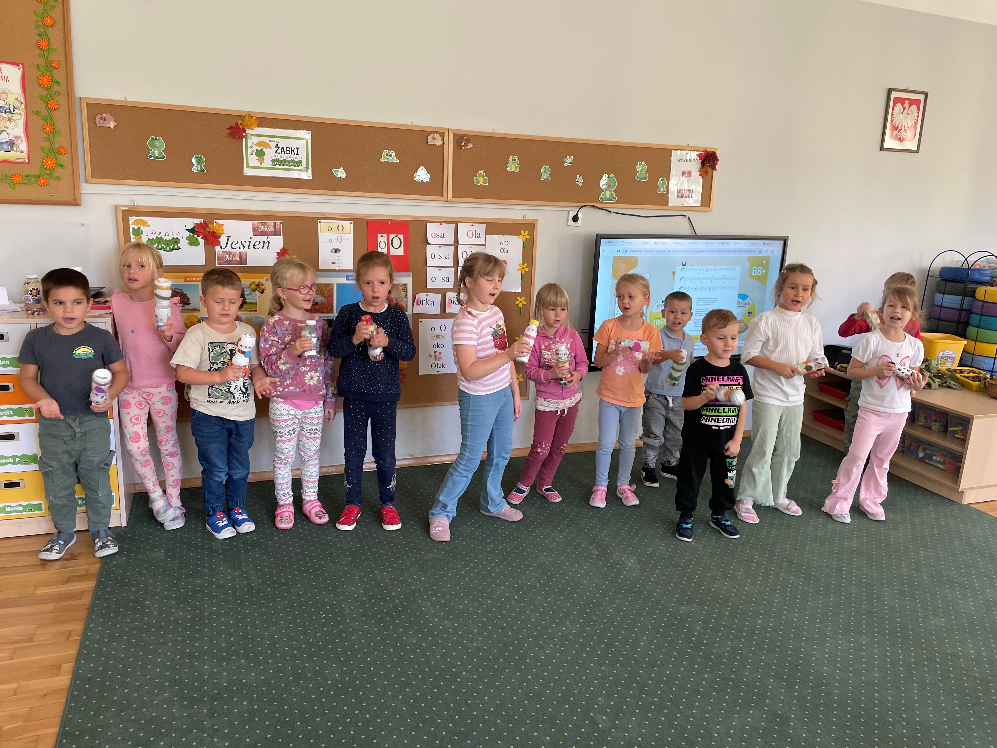 Na zakończenie zajęć zagrały na nich do piosenki "Jesień lubi kałuże", którą uczyły się przez cały tydzień.