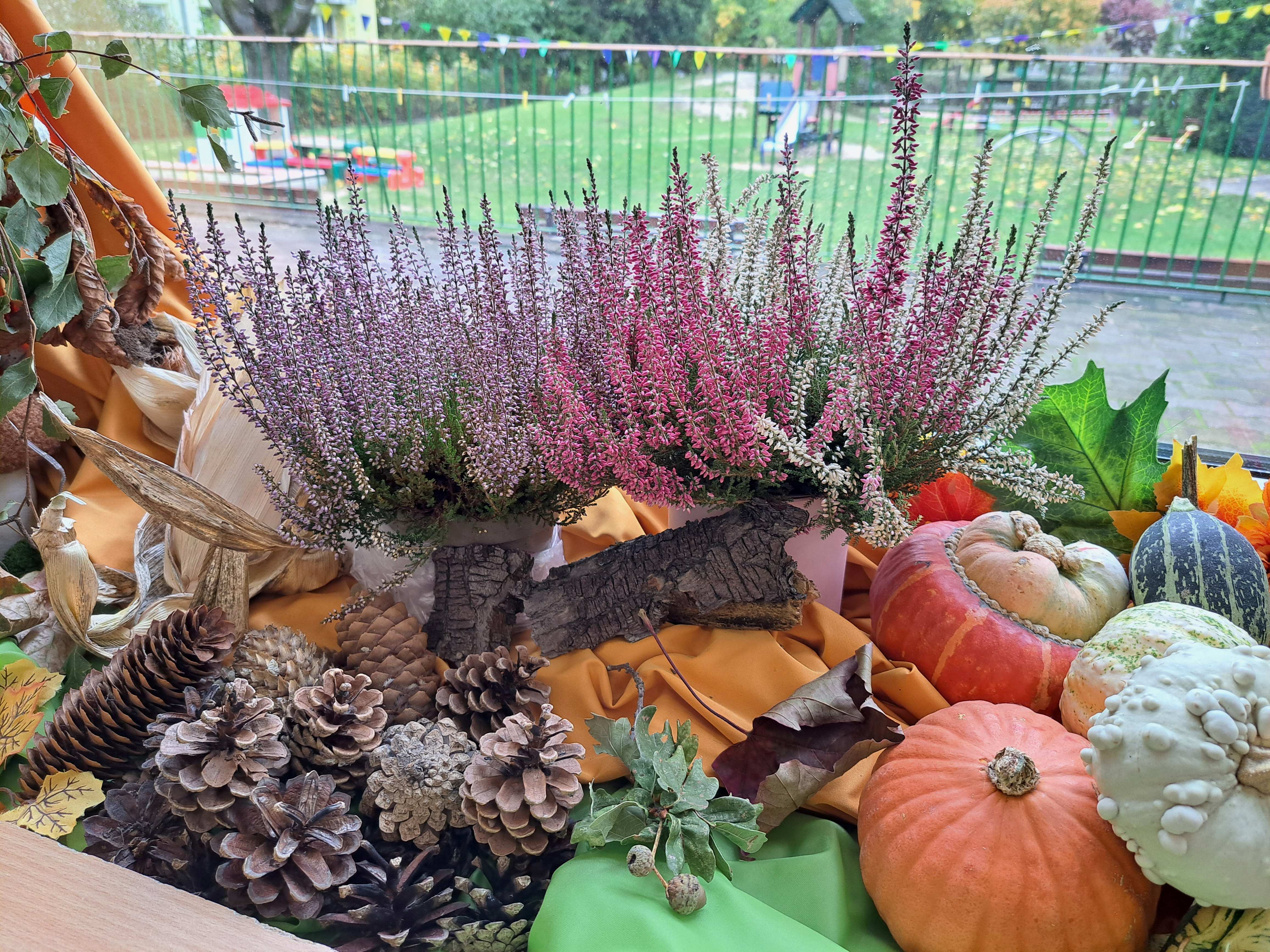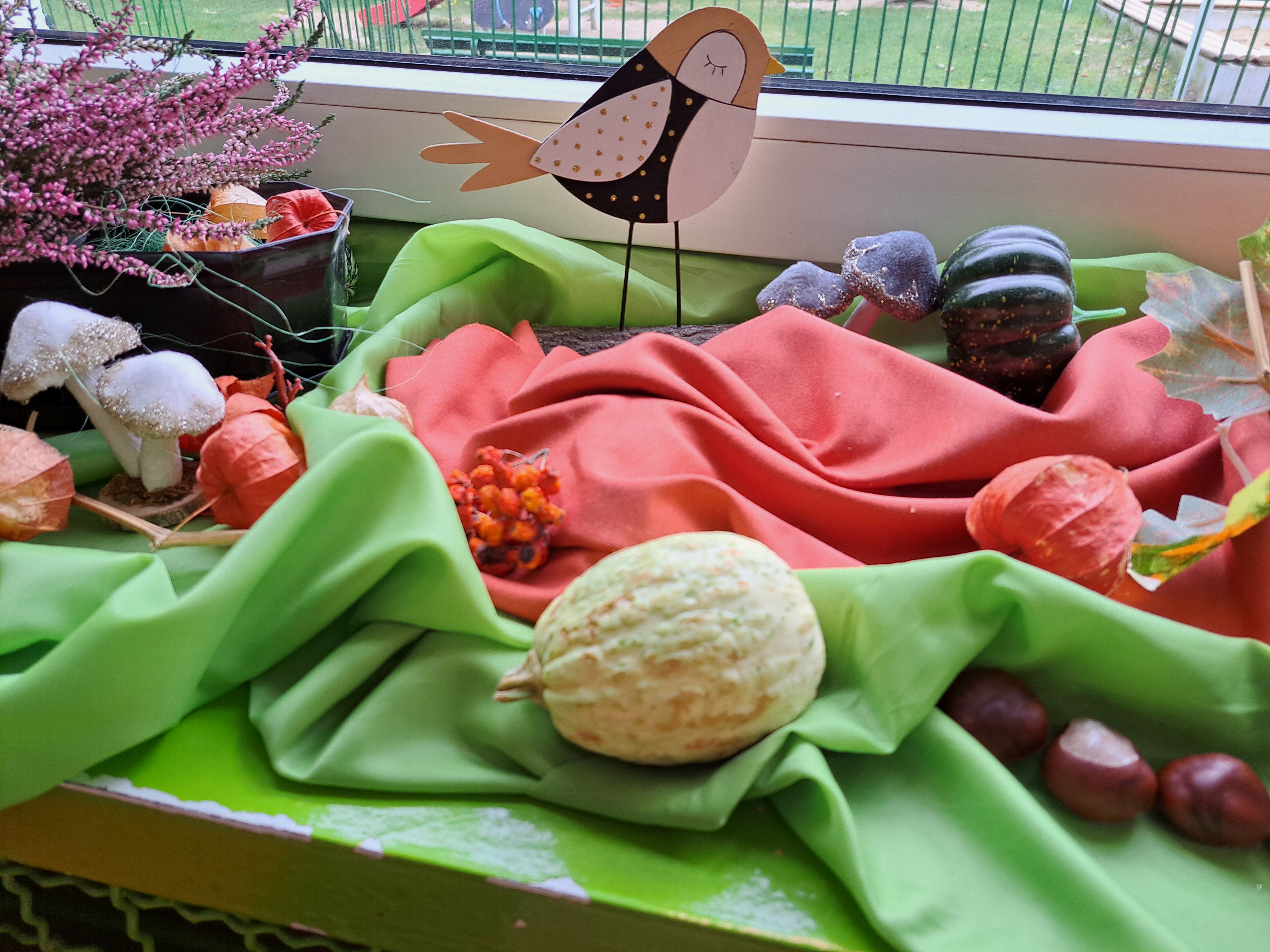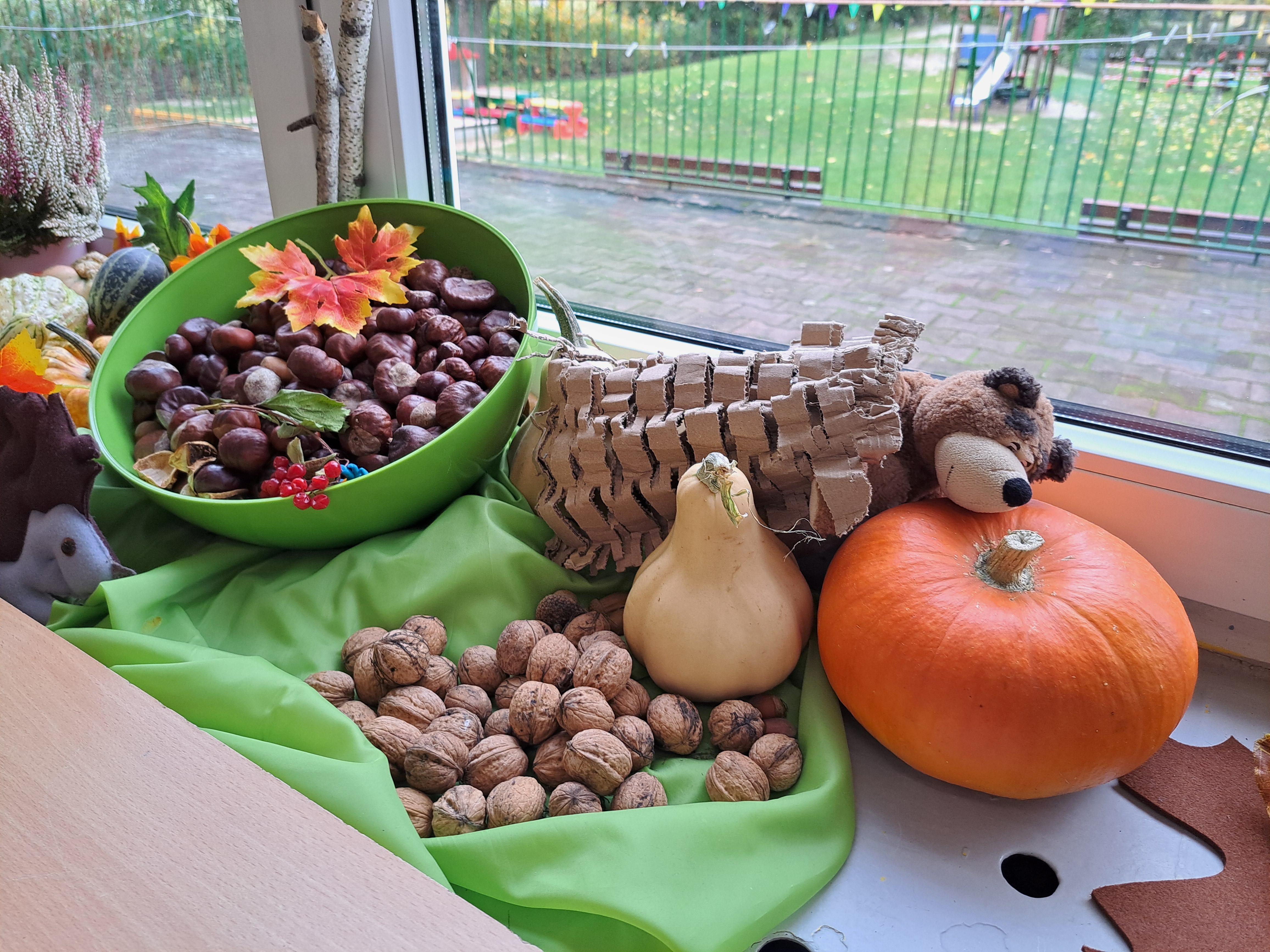 Przedszkolaki wraz z rodzicami wzbogacili je o przyniesione dary jesieni: kasztany, żołędzie, liście, jarzębinę, wrzosy a także figurki różnych zwierząt.