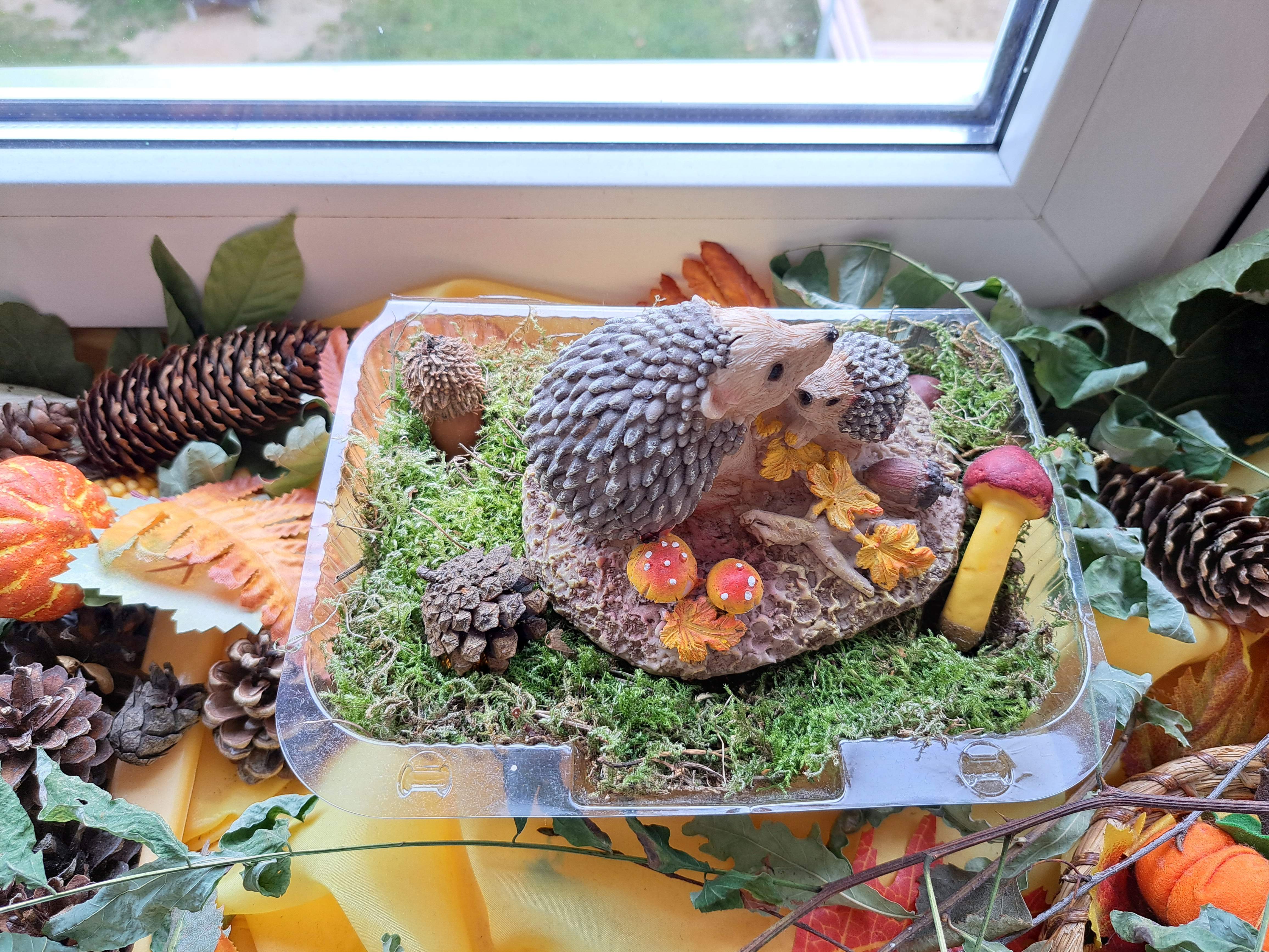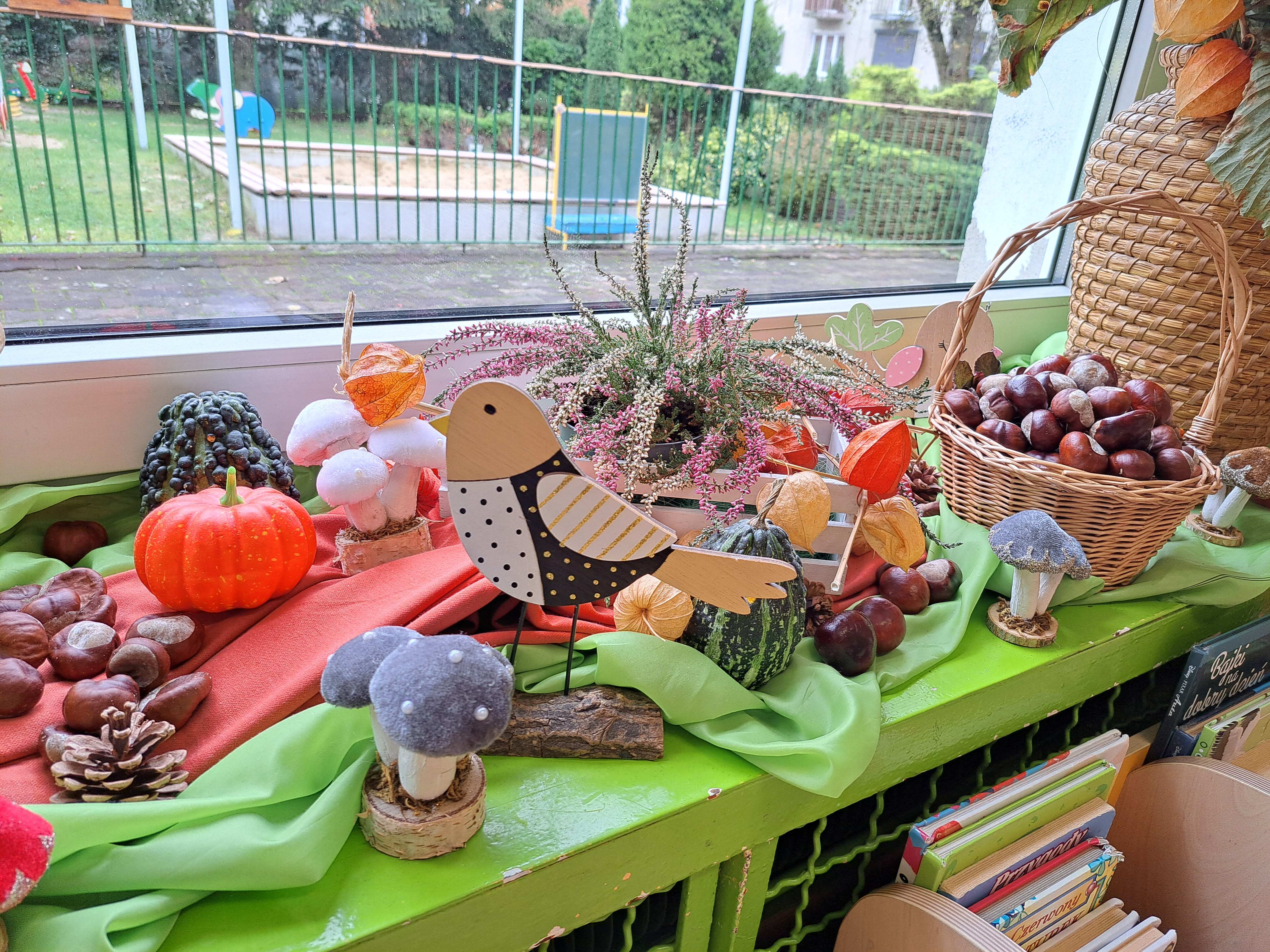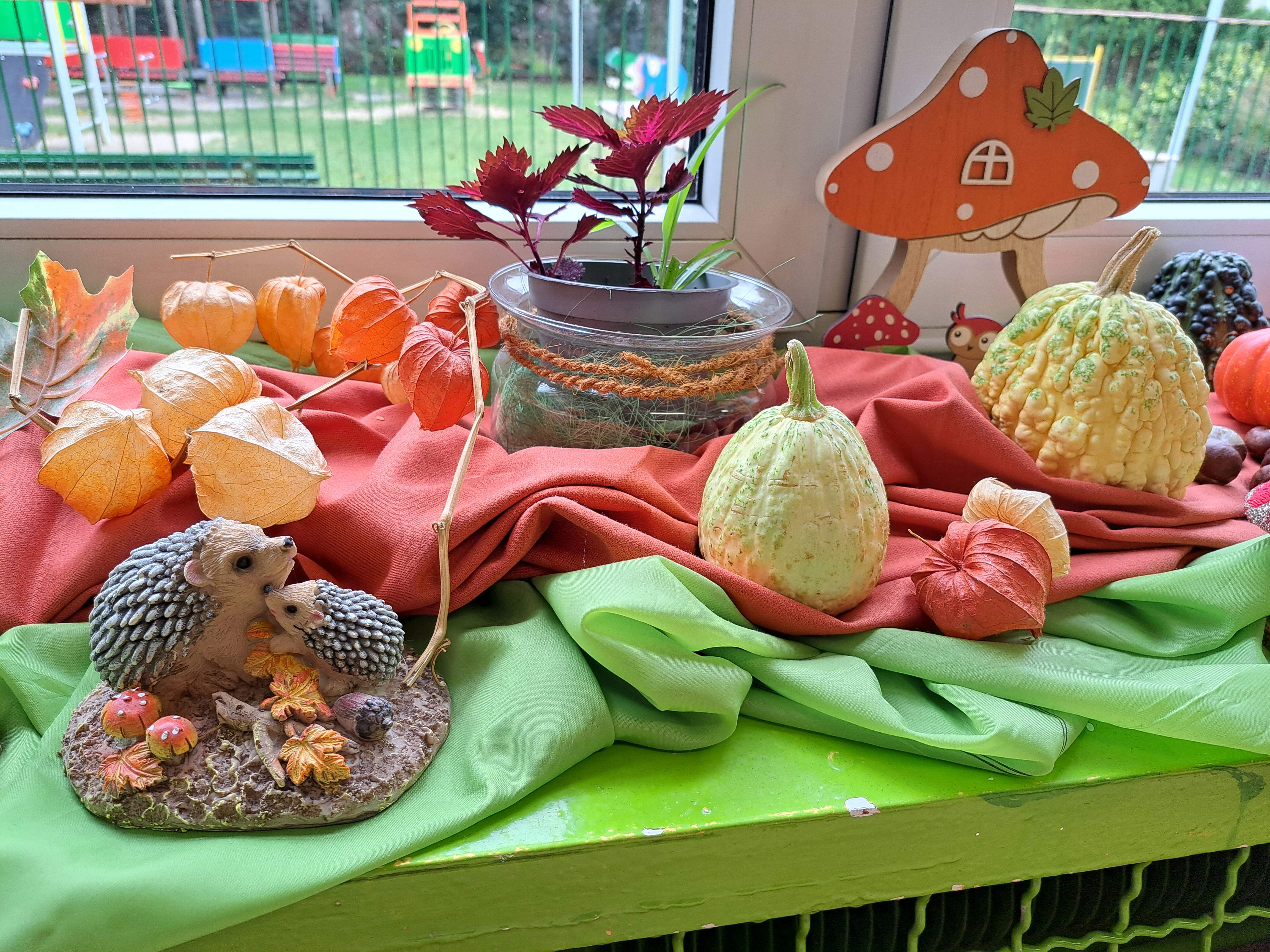 Przedszkolaki wraz z rodzicami wzbogacili je o przyniesione dary jesieni: kasztany, żołędzie, liście, jarzębinę, wrzosy a także figurki różnych zwierząt.