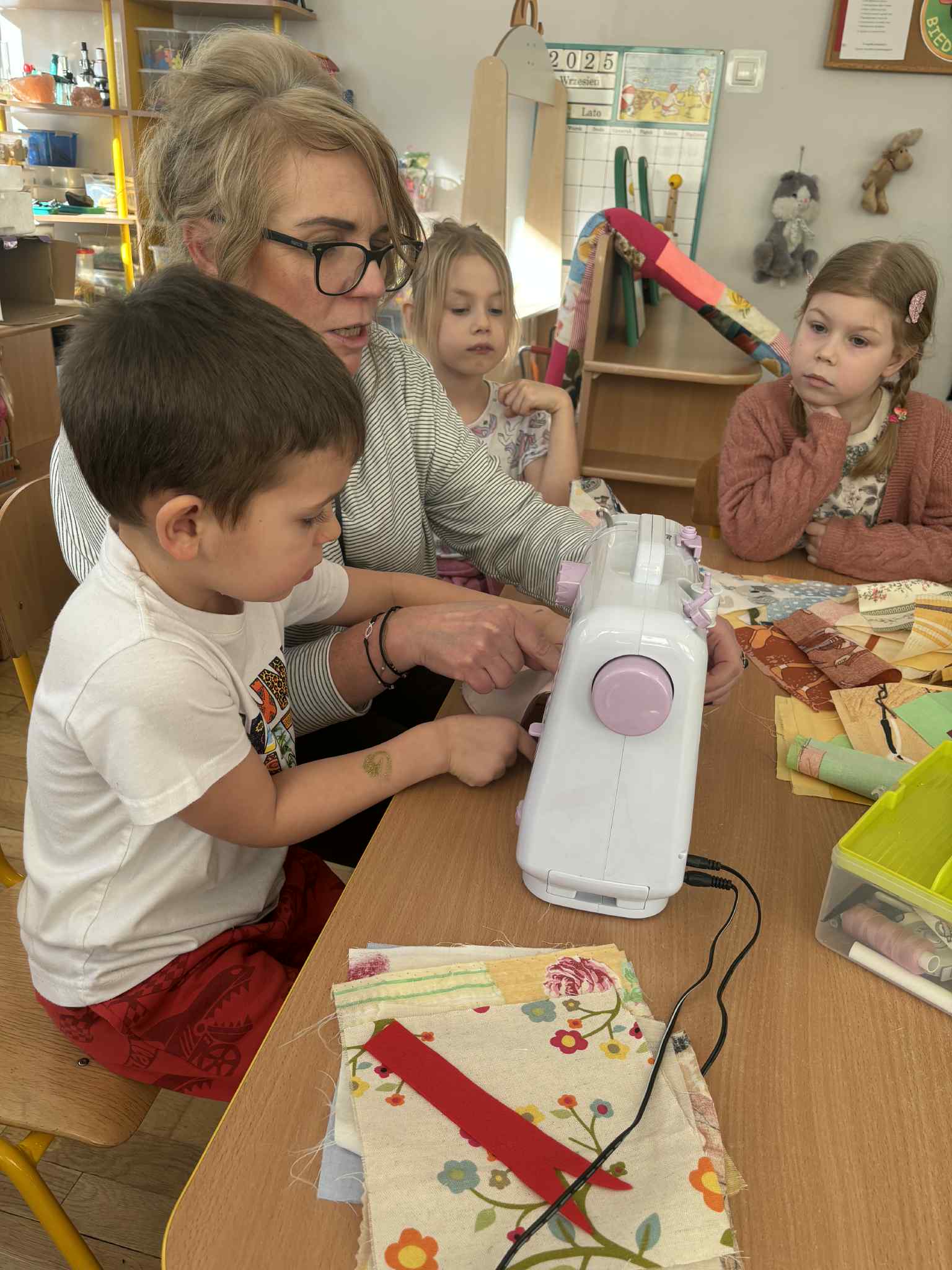 Dodatkowo uczyły się trudnej sztuki przyszywania guzików, ozdabiania filcowych serduszek ściegiem przed igłą, zapoznały się z różnymi rodzajami materiałów.