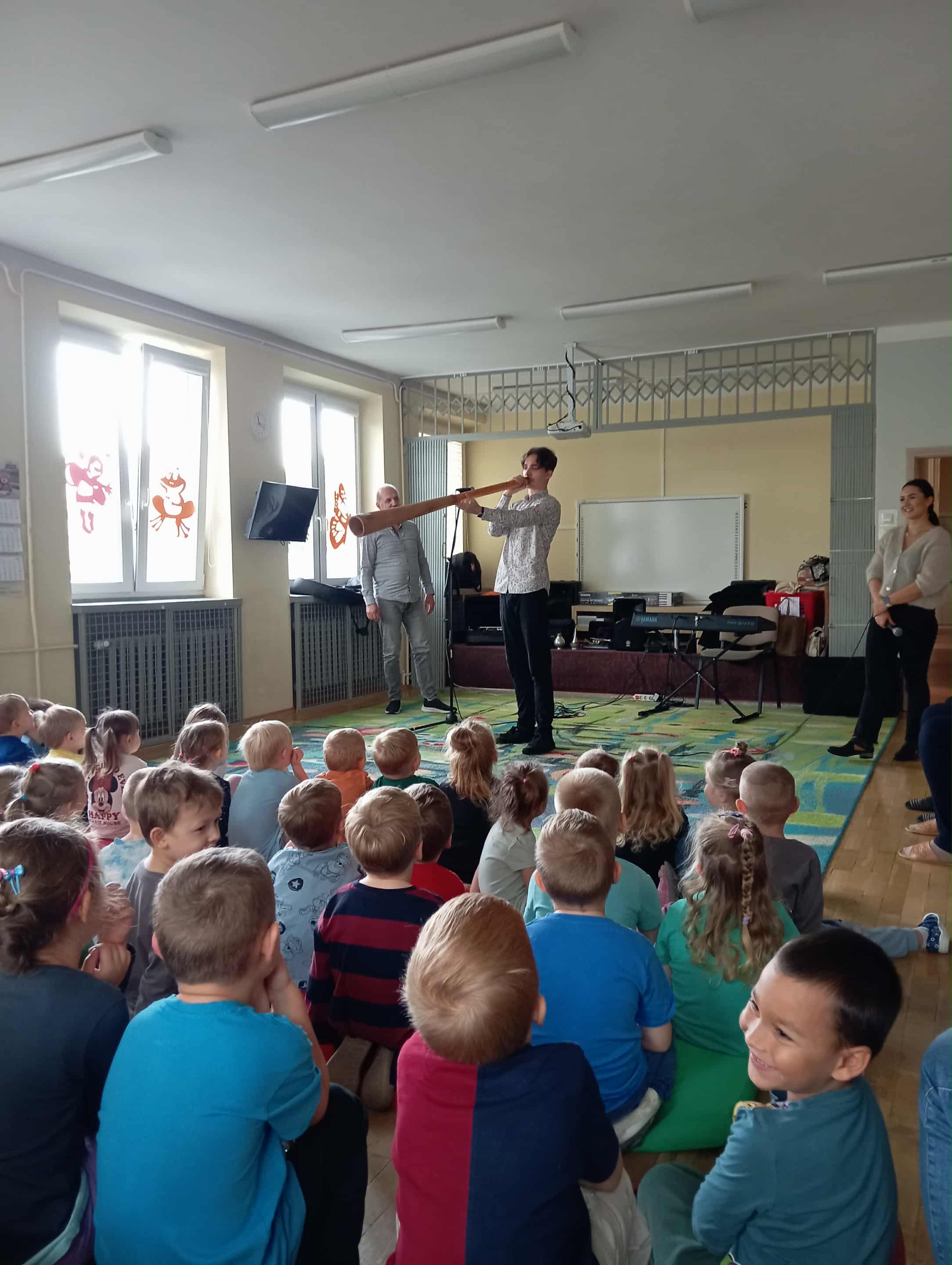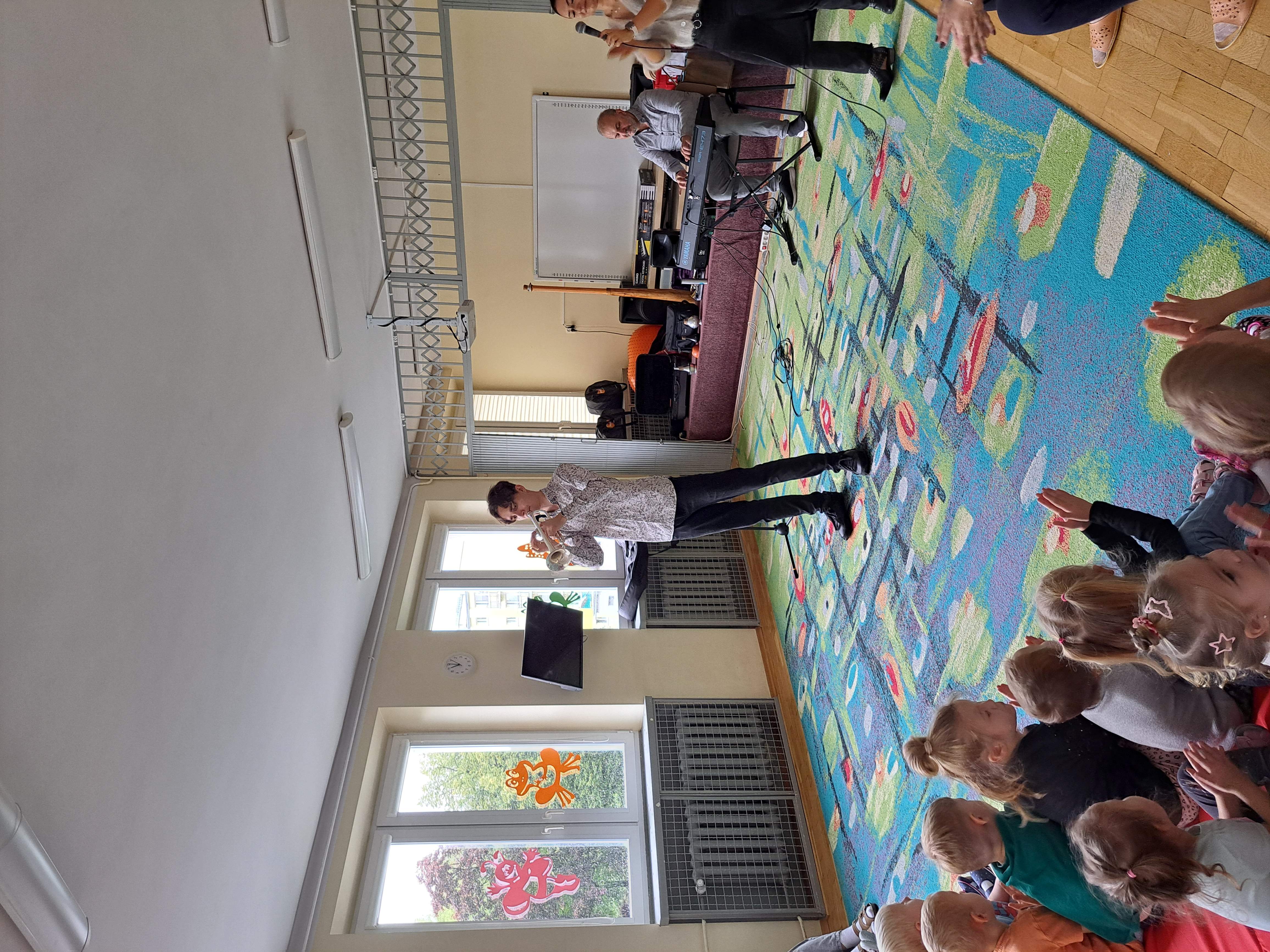 Dzieci zapoznały się z dźwiękiem trąbki, śpiewały wspólnie z prowadzącą oraz tańczyły do poznanych piosenek.