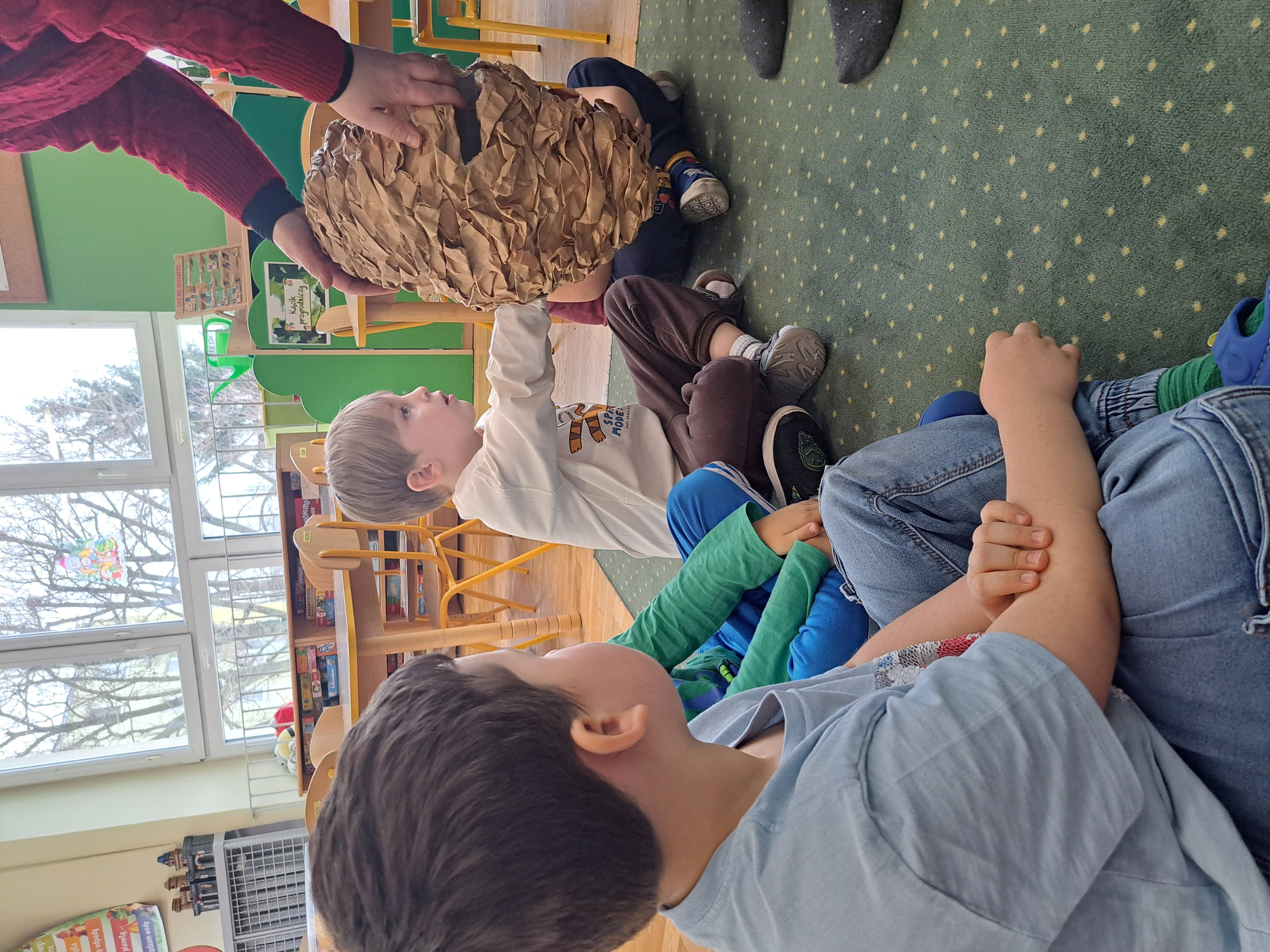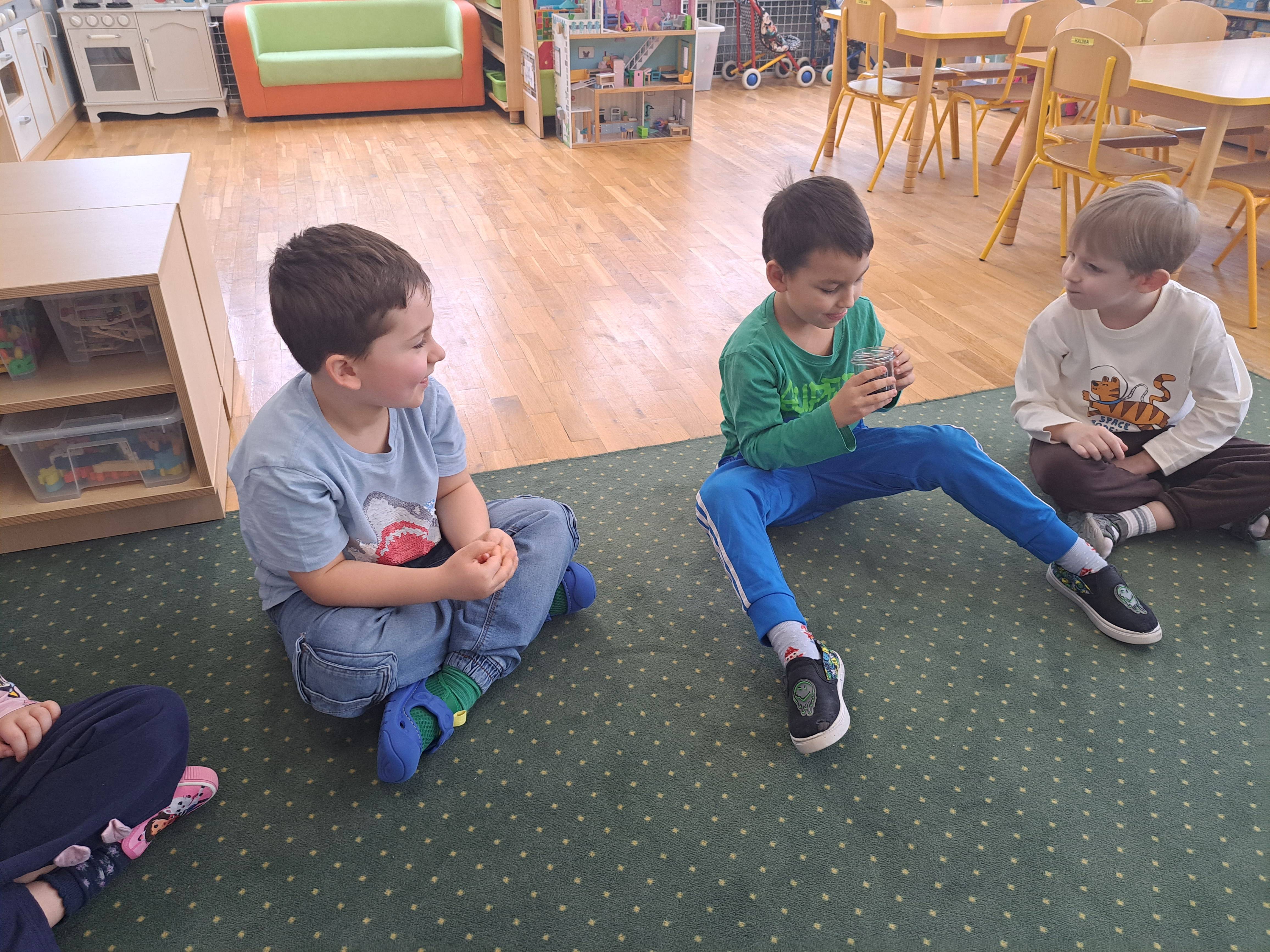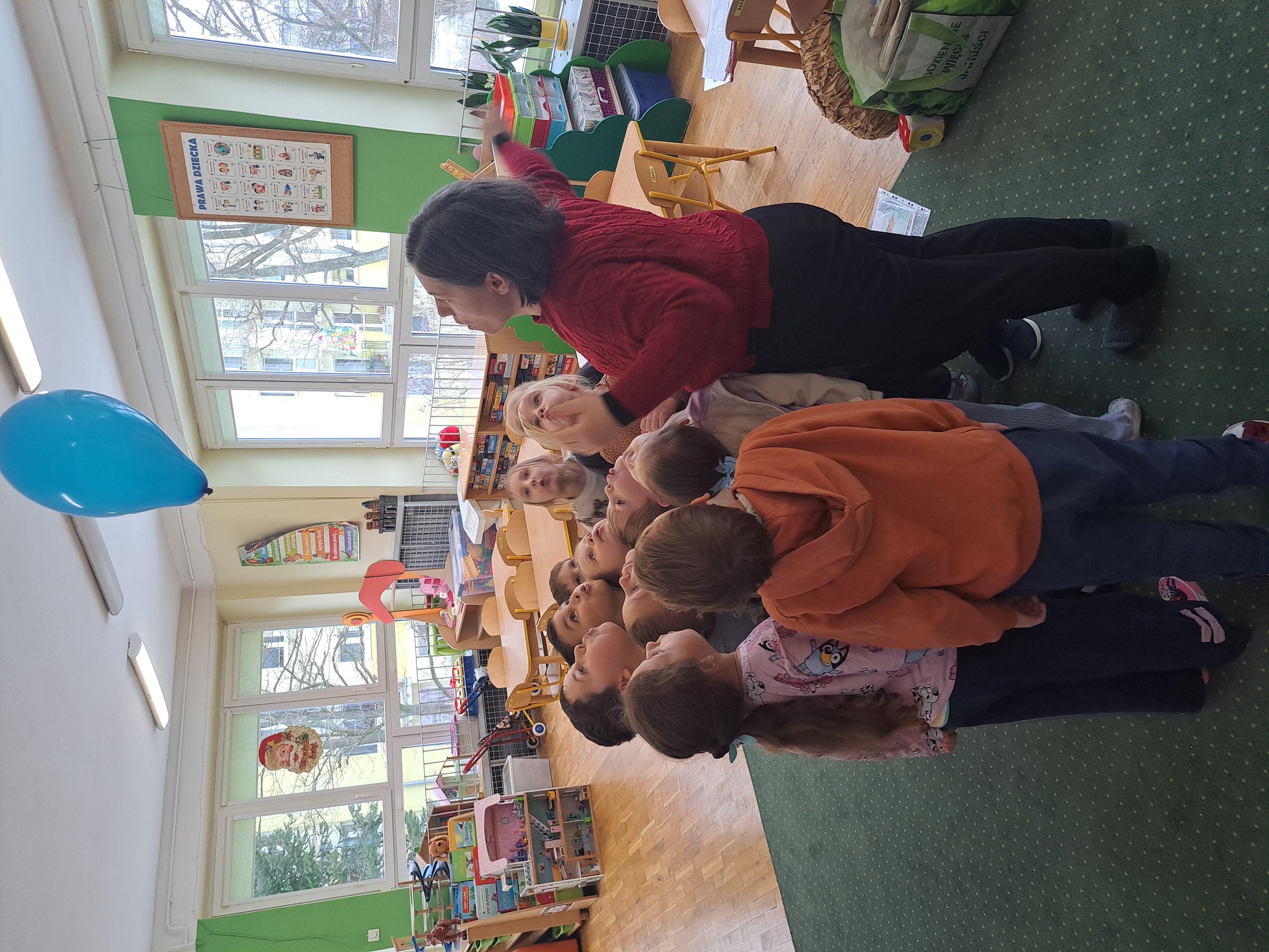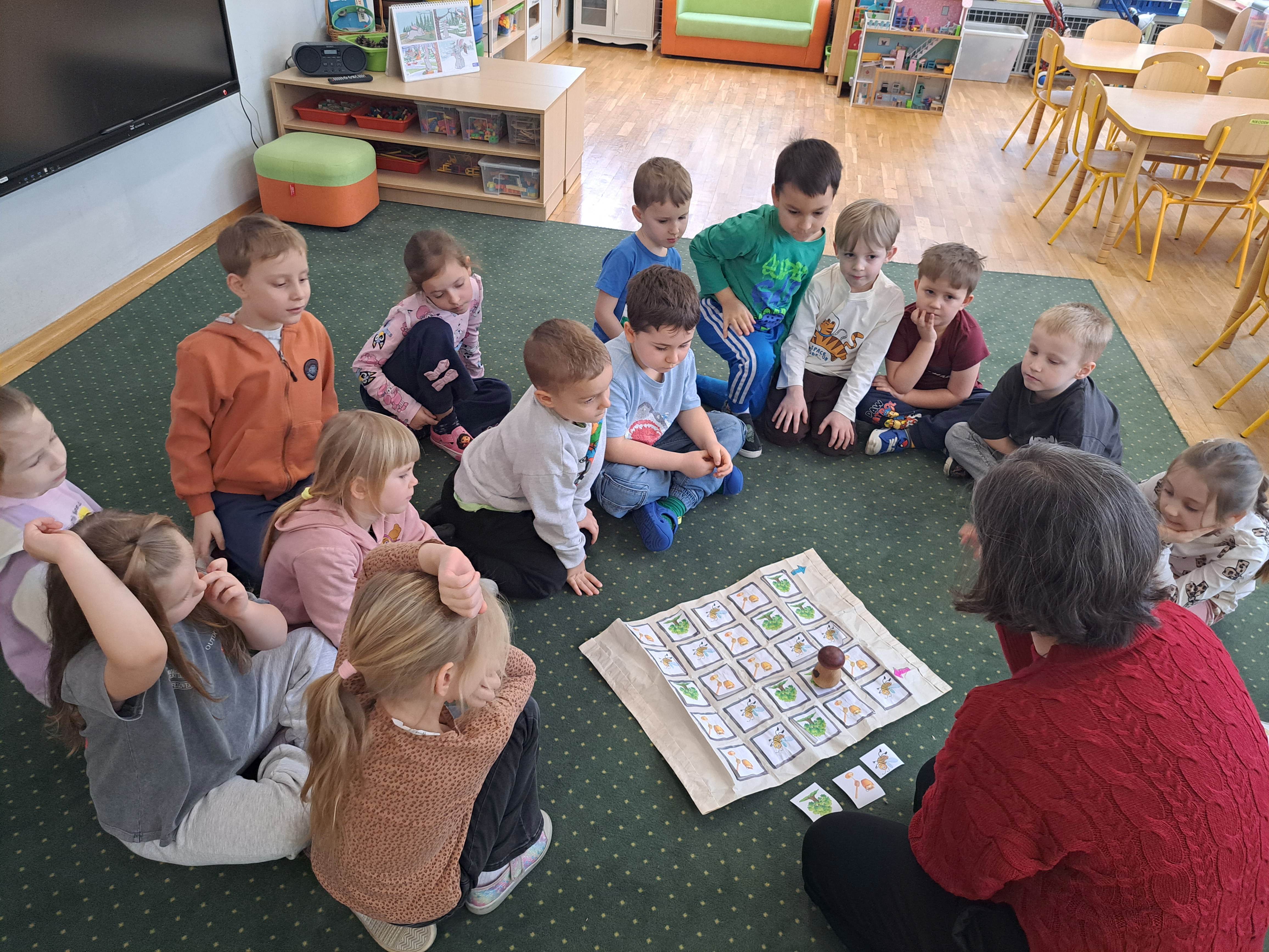 W grupie Żabek odbyły się wyjątkowe Kubusiowe Lekcje Uważności, podczas których dzieci uczyły się, jak lepiej rozumieć swoje emocje i dbać o dobre samopoczucie. Zajęcia prowadzone były przez panią bibliotekarkę z Biblioteki Pedagogicznej.