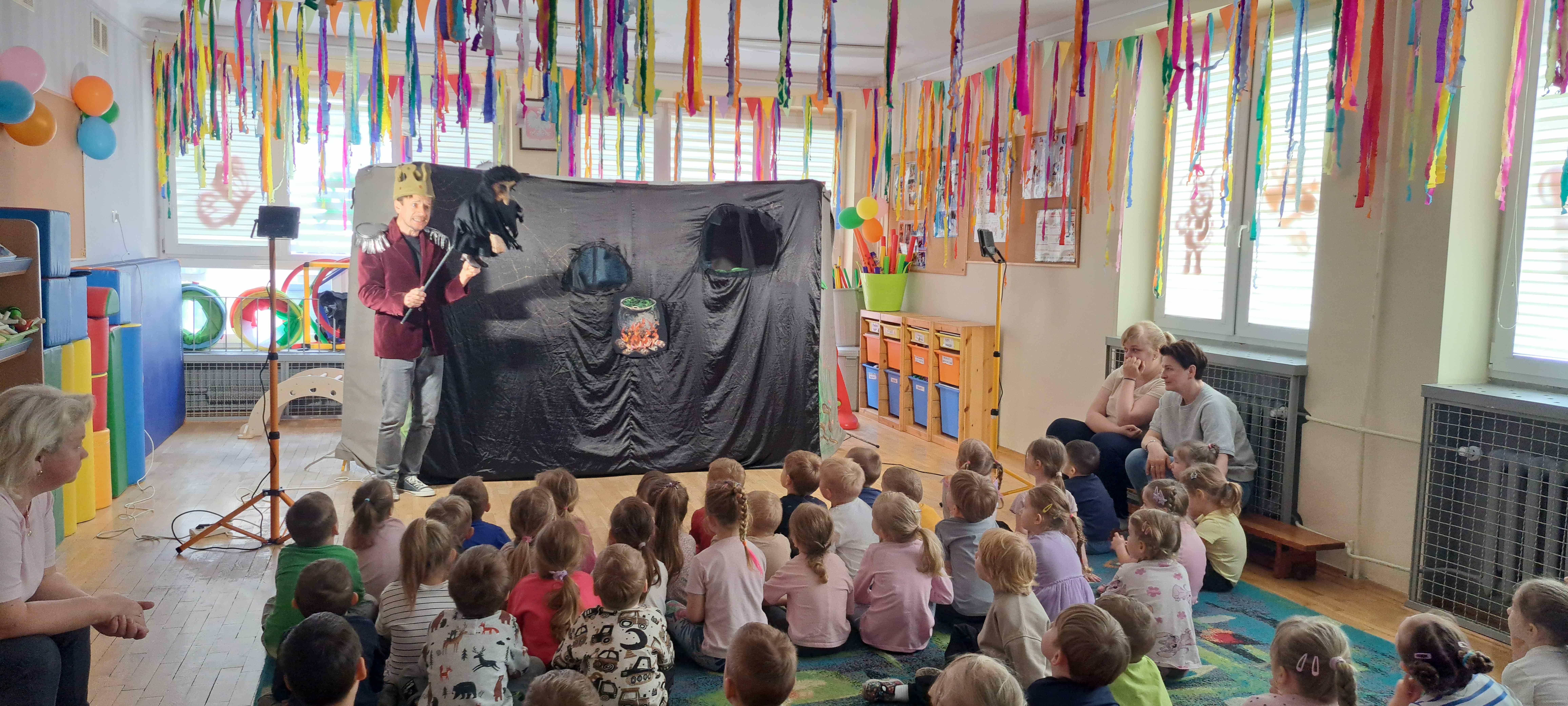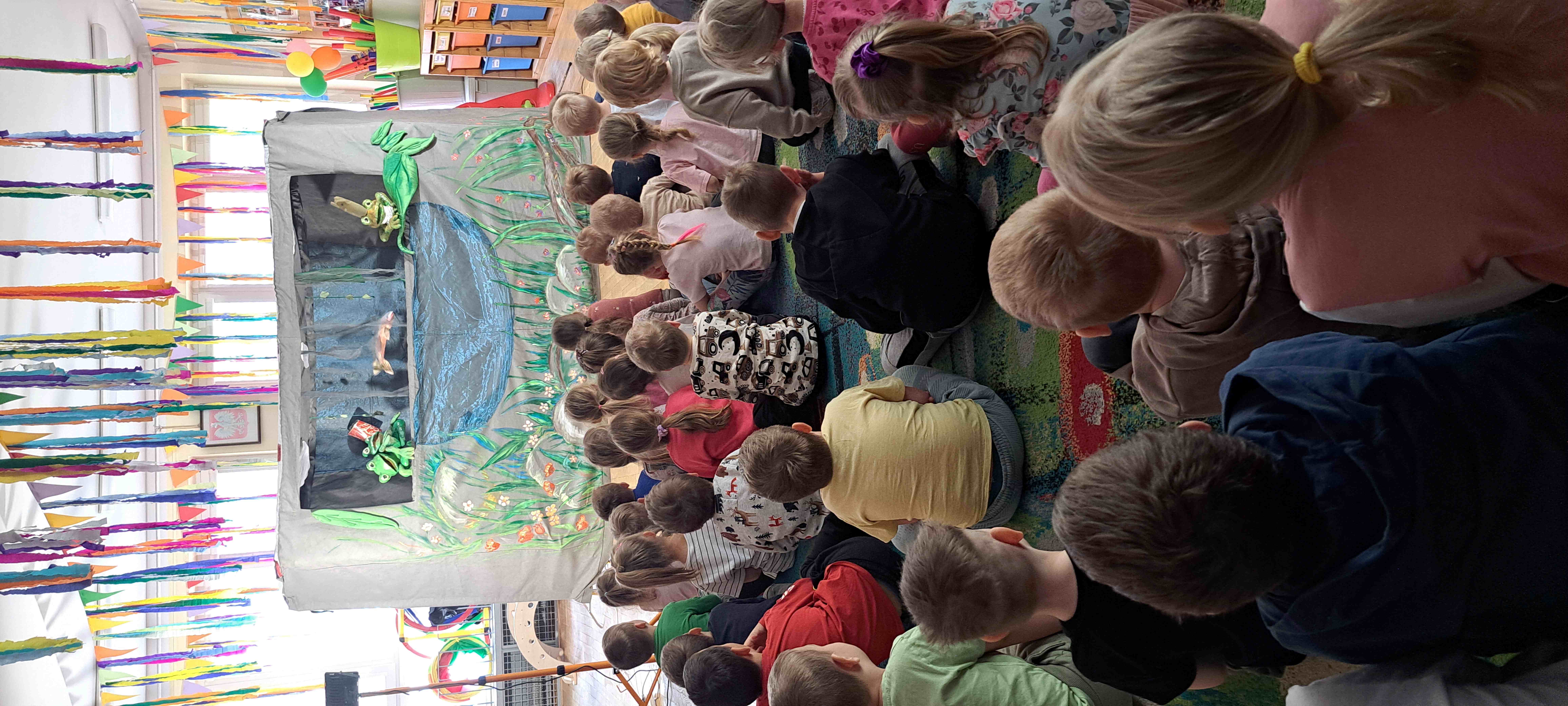 Dzisiaj nasze przedszkolaki obejrzały spektakl "Żabi królewicz" w wykonaniu teatrzyku Widzimisie.