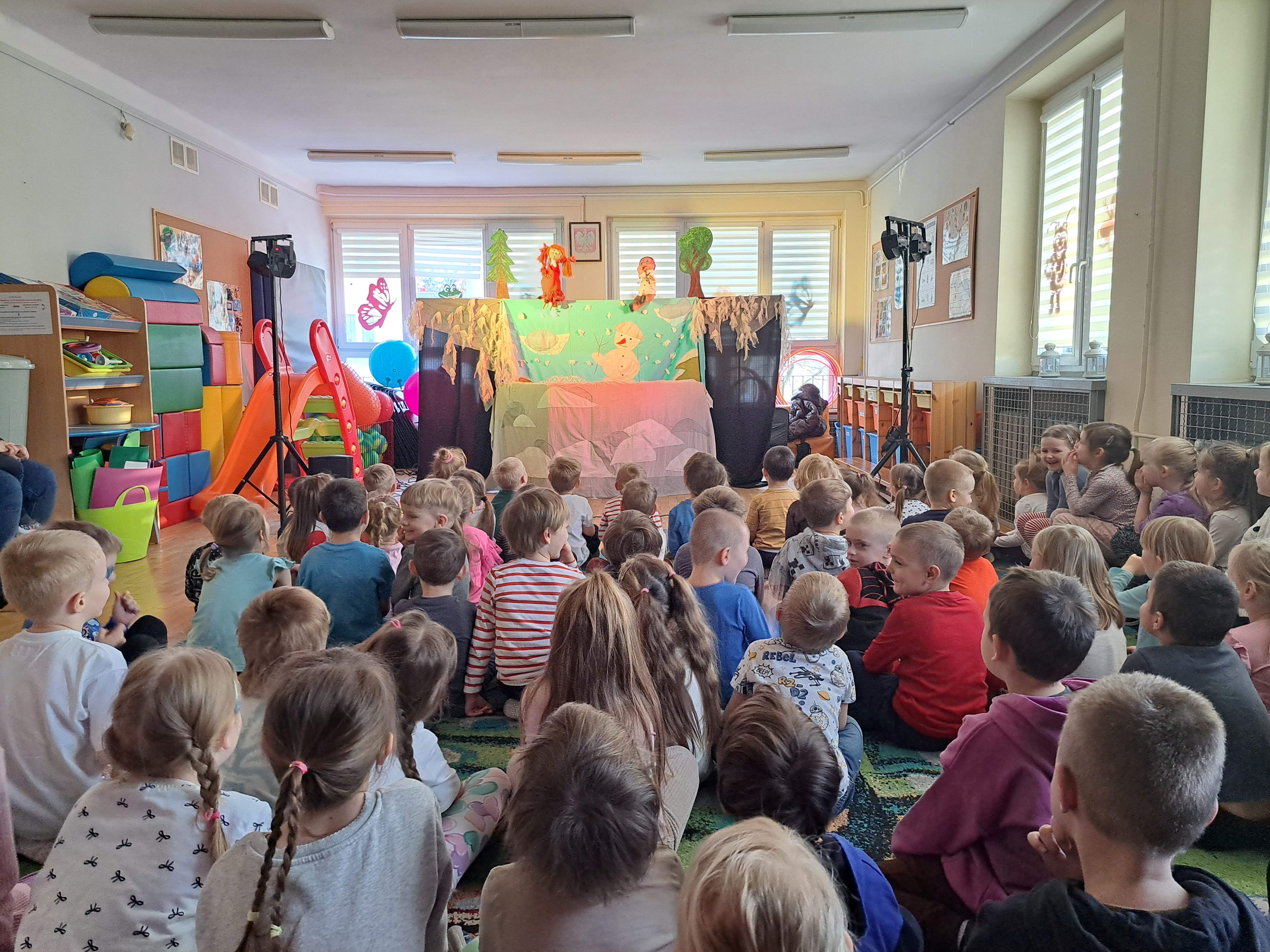 Dzisiaj nasze przedszkole odwiedził teatrzyk Pacuś. Wystawił on dla dzieci przedstawienie "Zimowa opowieść".