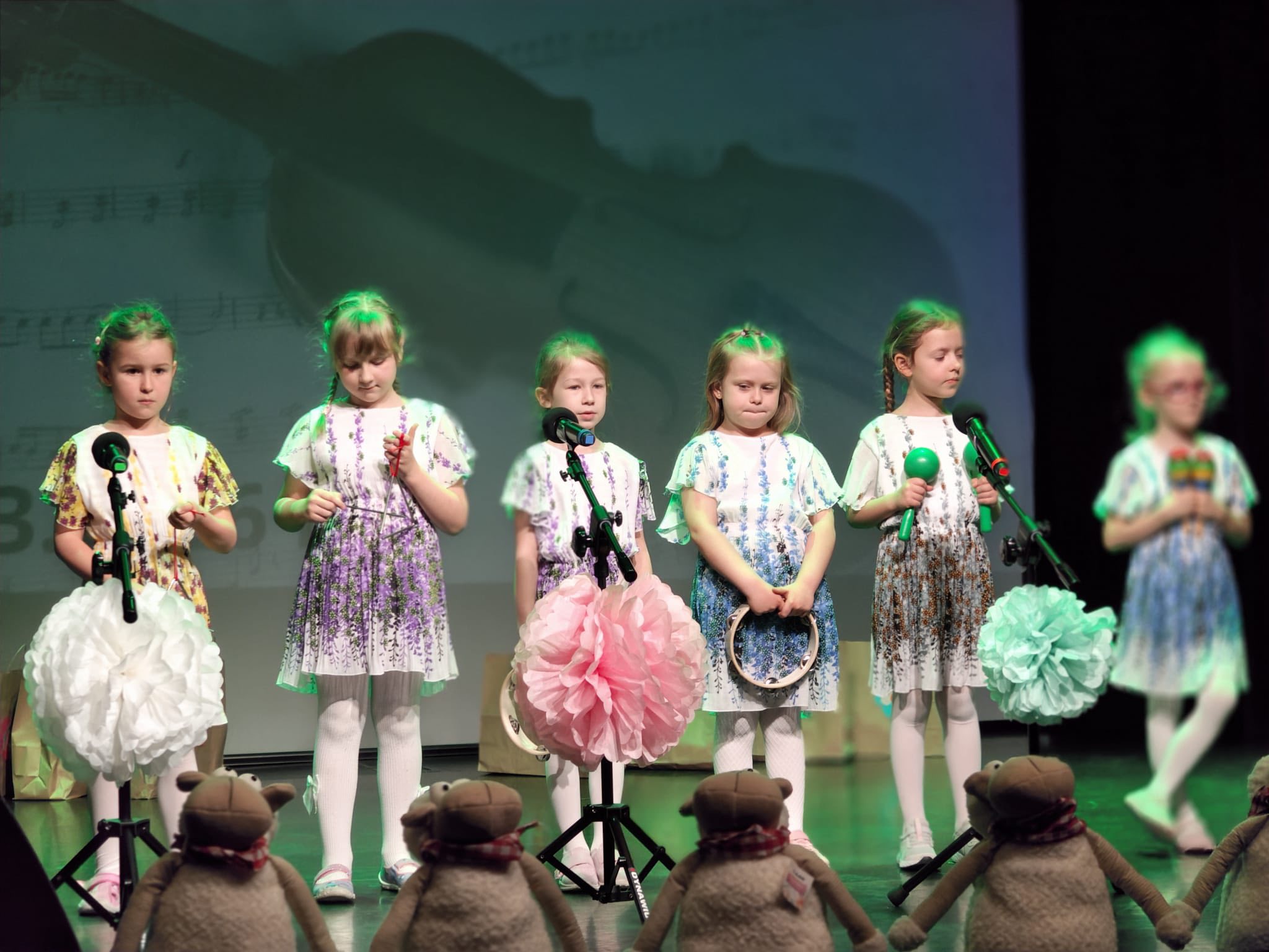 Dziewczynki z grupy Żabek reprezentowały nasze przedszkole na Miejskim Przeglądzie Orkiestr Dziecięcych organizowanym przez Przedszkole Miejskie nr 15 w Pabianicach.