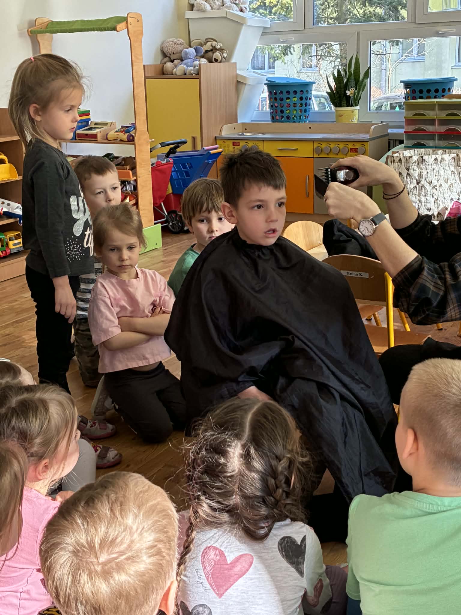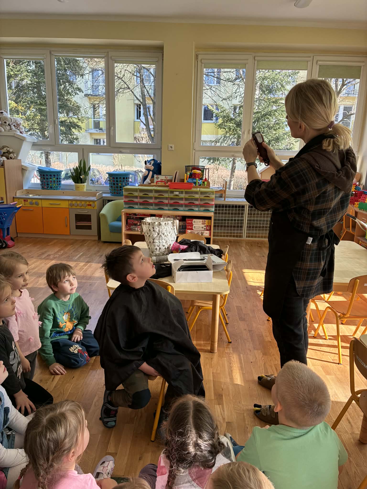 Dodatkowo dowiedziały się, jak ważne jest dbanie o włosy i higienę. Było kreatywnie, wesoło i edukacyjnie – nasze pociechy z entuzjazmem wcielały się w role małych fryzjerów!