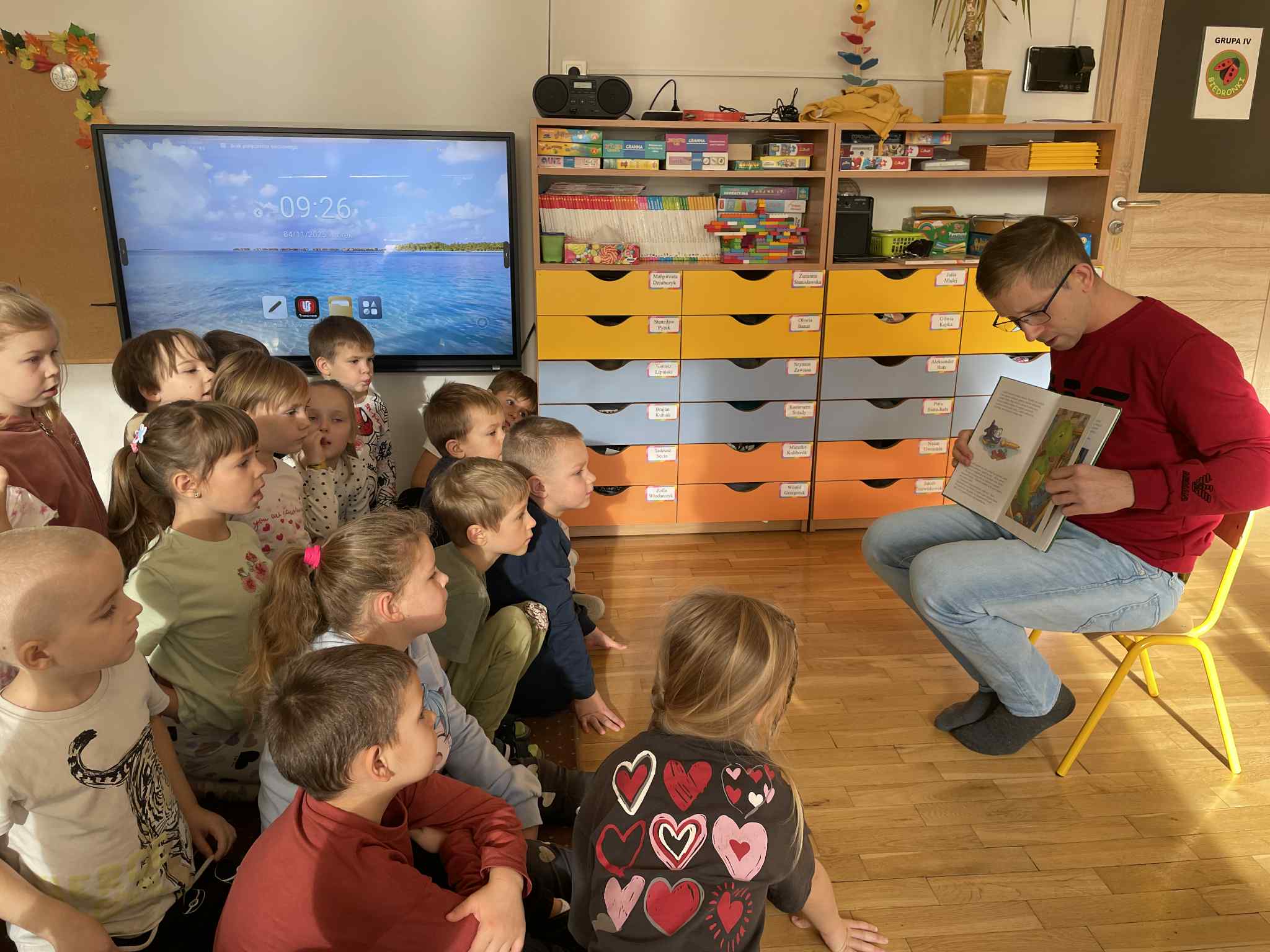 Przedszkolaki z grupy Biedronek odwiedził tata Natana. Przeczytał on dzieciom bajkę "Franklin i świąteczny prezent".