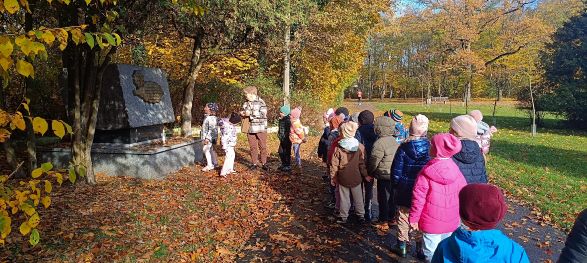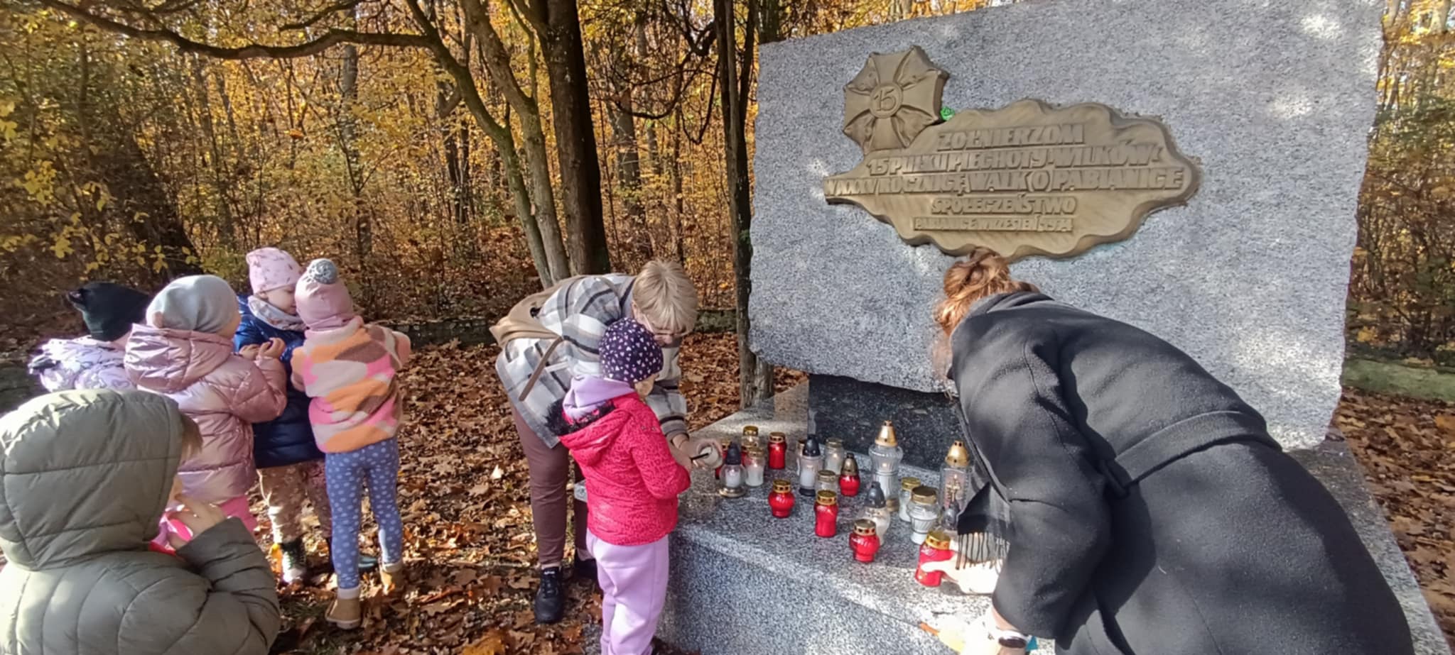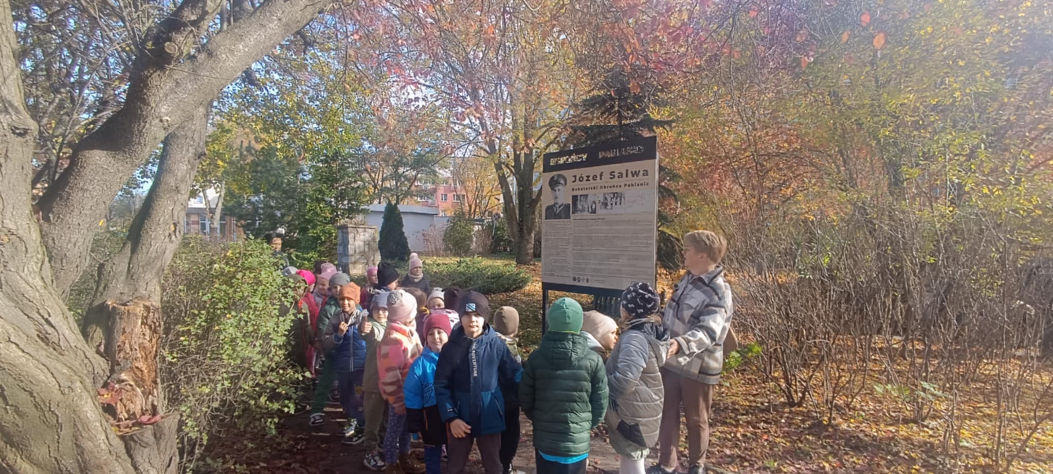 Na osiedlu Salwy oraz w parku dzieci zapaliły znicze na pomnikach upamiętniając w ten sposób bohaterów wojennych z okazji zbliżającego się święta Wszystkich Świętych.