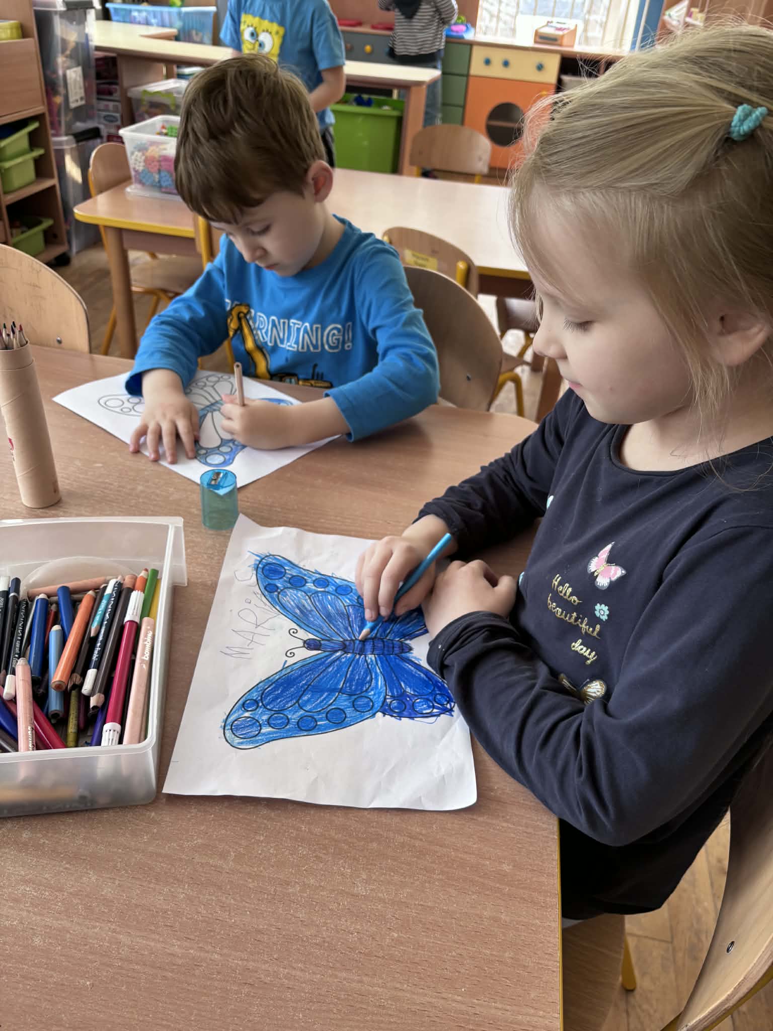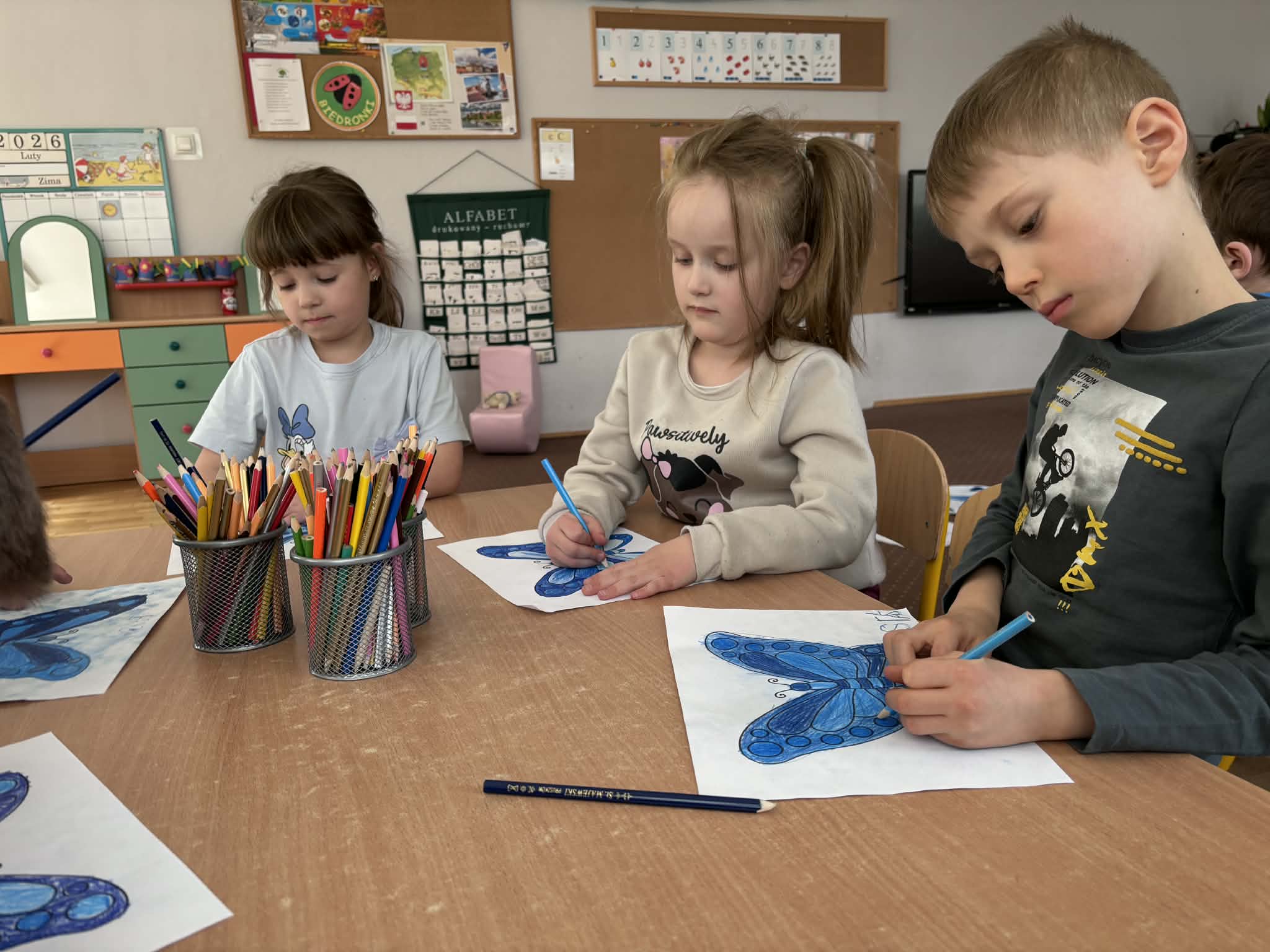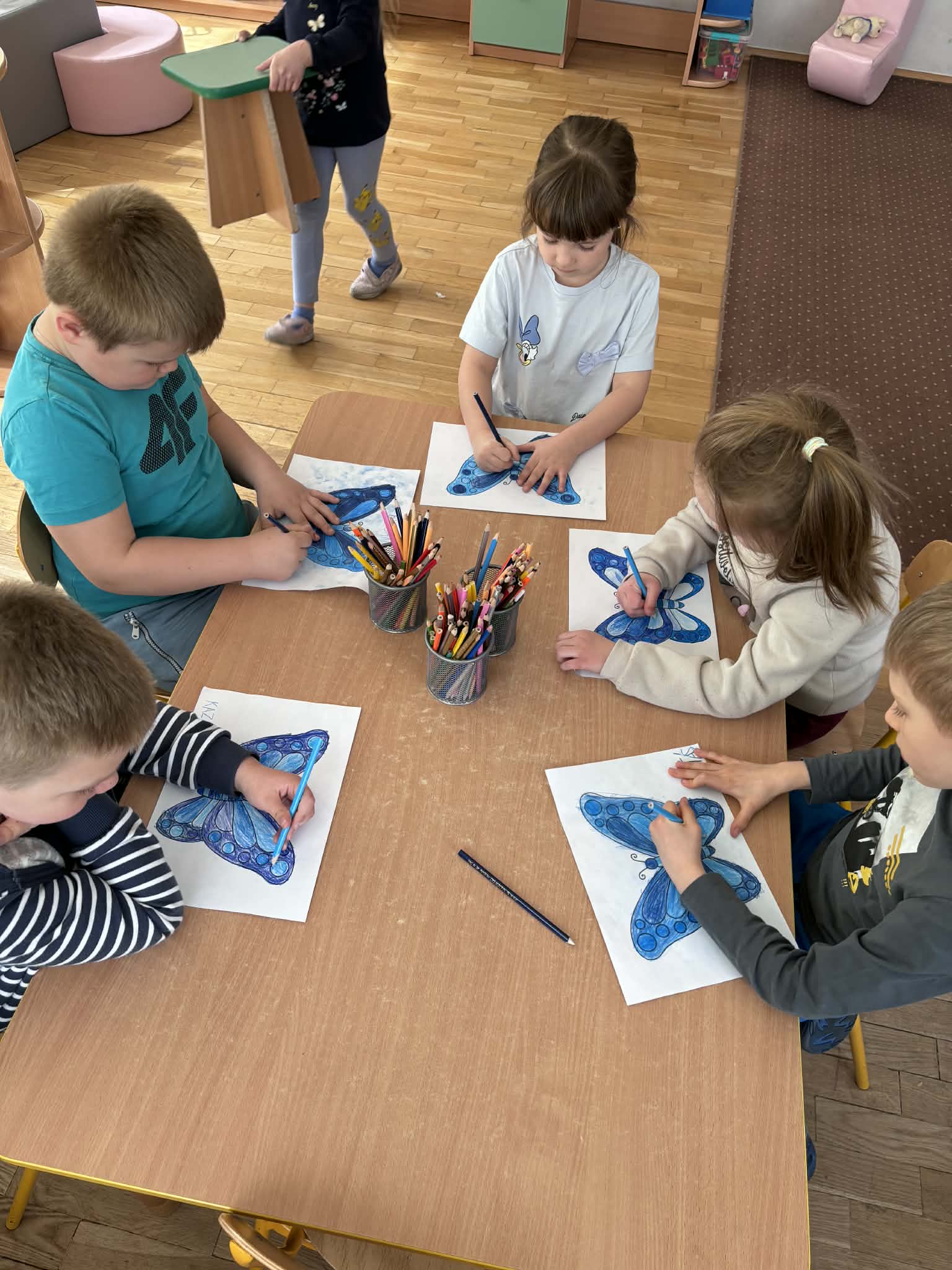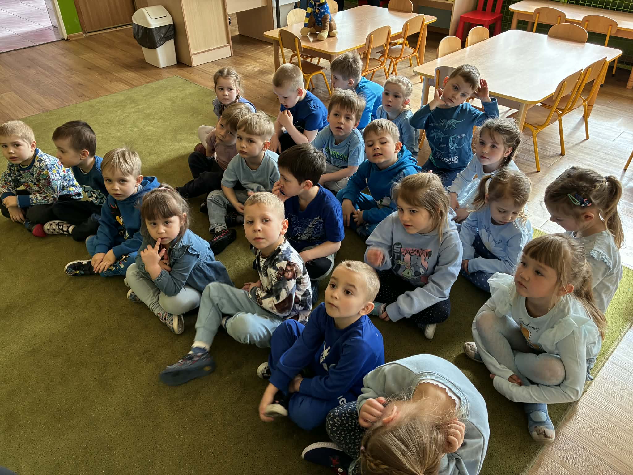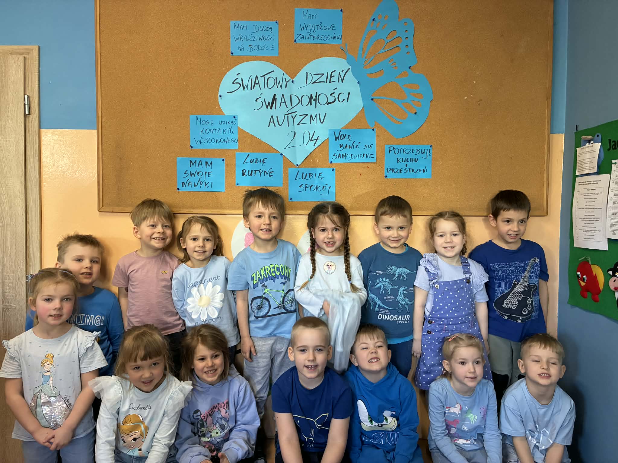Na znak solidarności z osobami z autyzmem wszystkie dzieci oraz pracownicy przedszkola przyszli ubrani na niebiesko – kolor symbolizujący wsparcie i jedność.