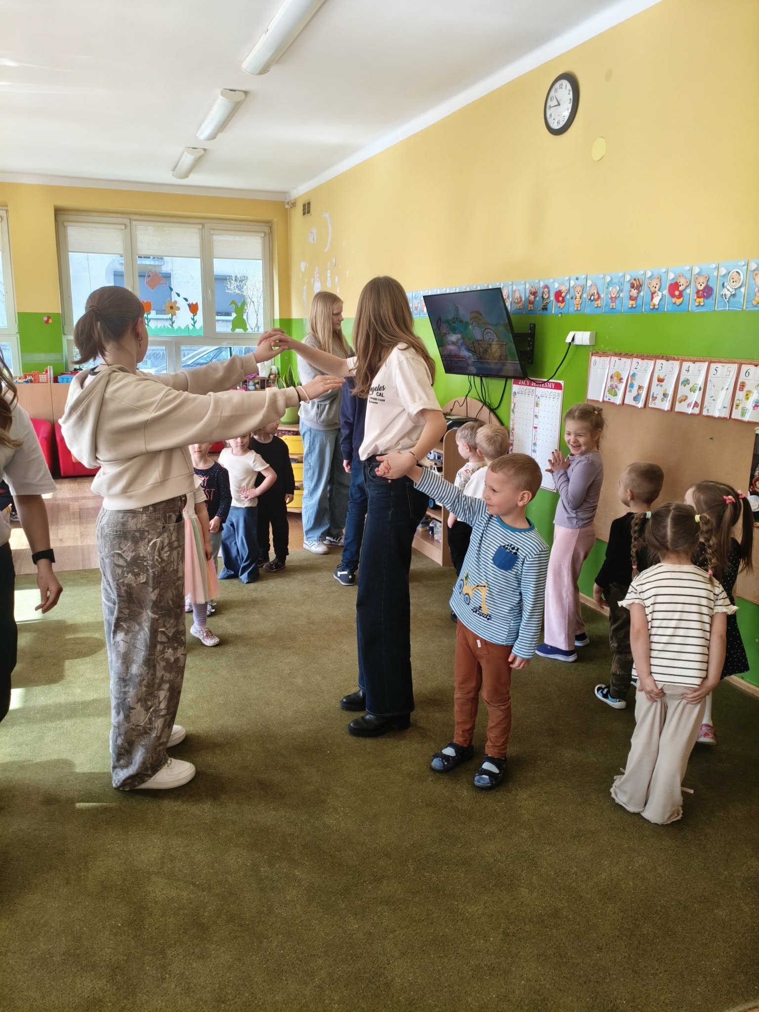 W naszym przedszkolu gościliśmy wolontariuszy ze Szkoły Podstawowej nr 14 z klas 7 i 8, którzy spędzili czas z dziećmi na wspólnych zabawach i aktywnościach.