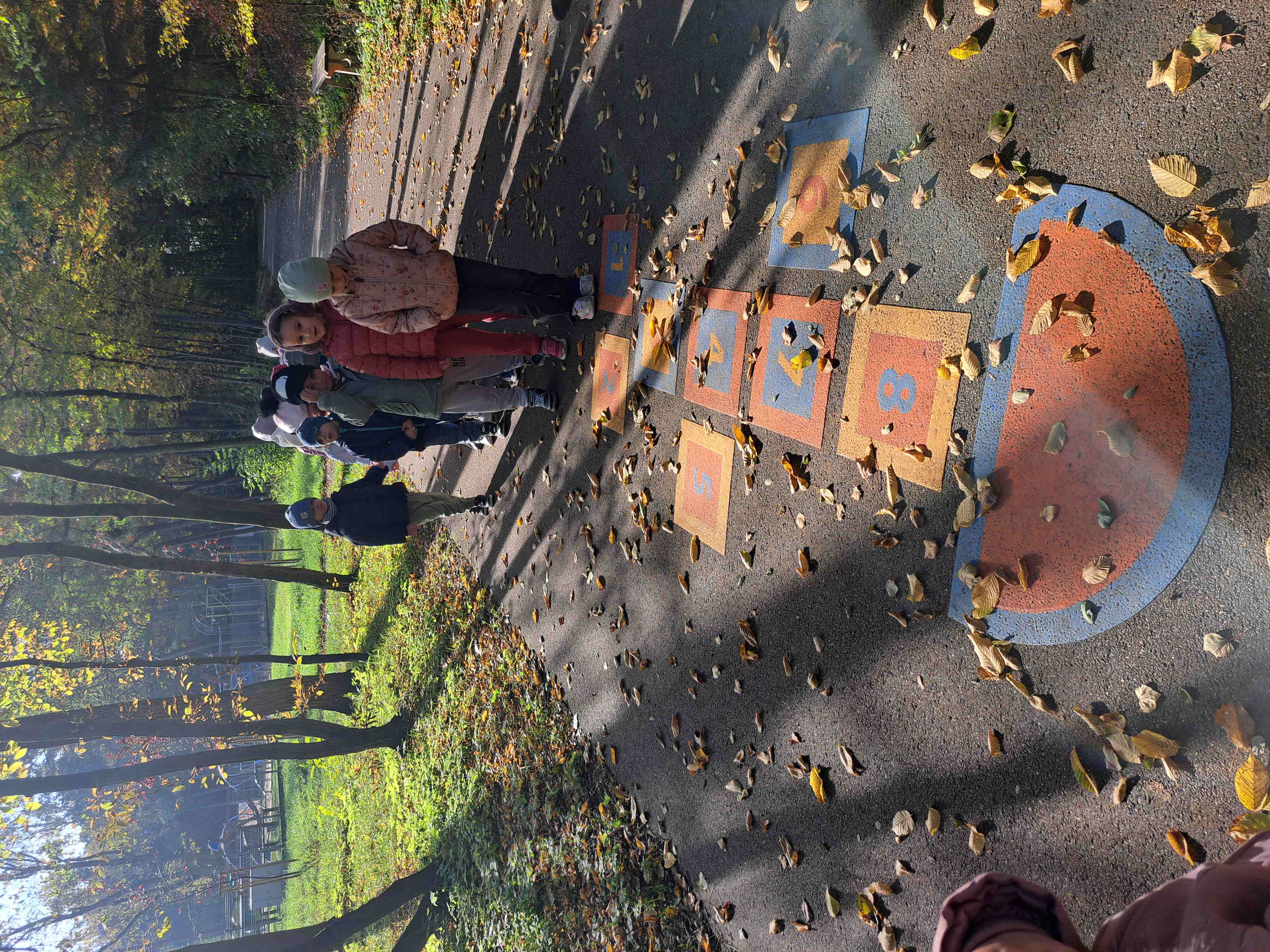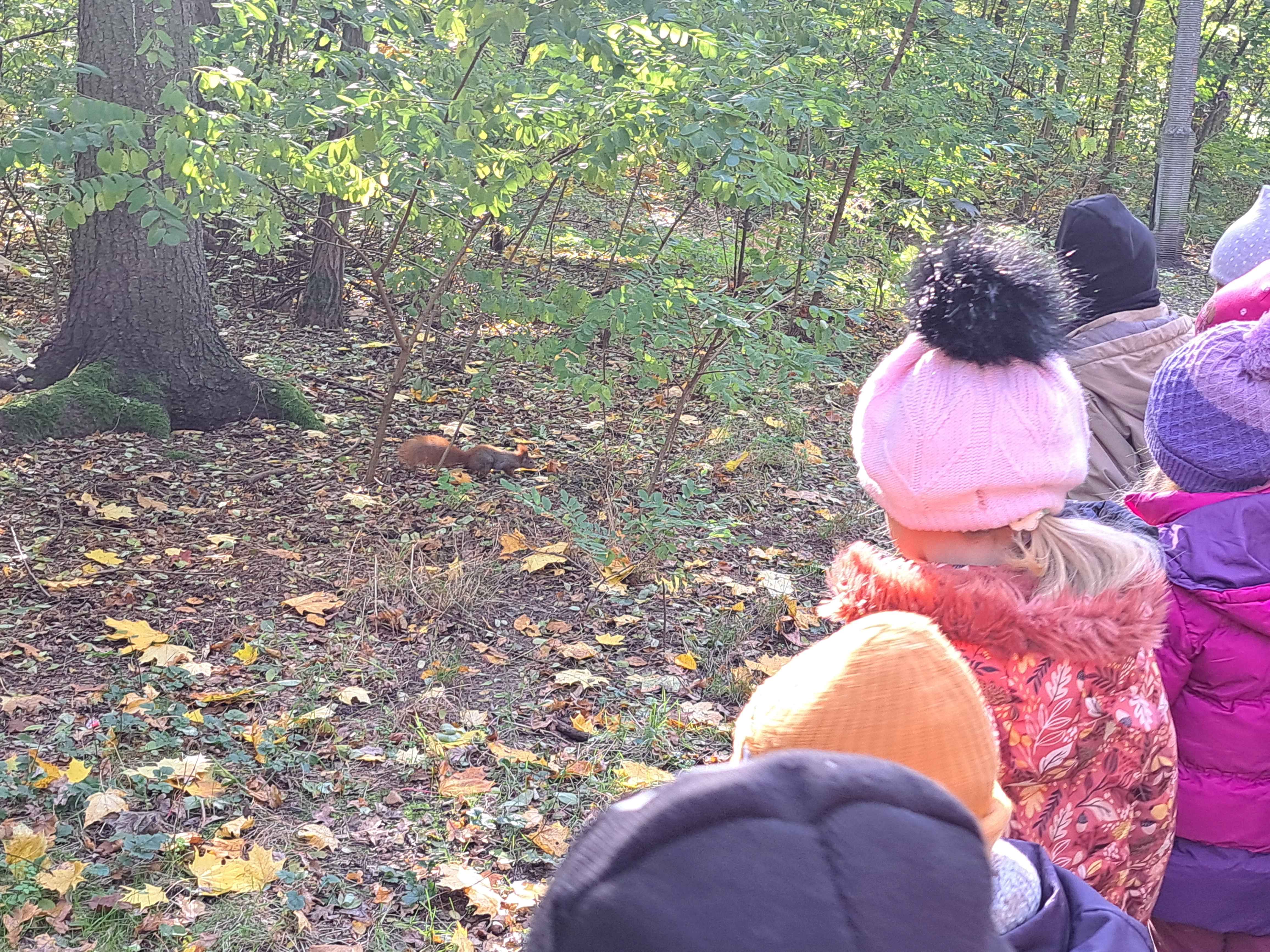 Tam szukały kolorów jesieni, a także wypatrywały wiewiórek, które licznie im się pokazywały.