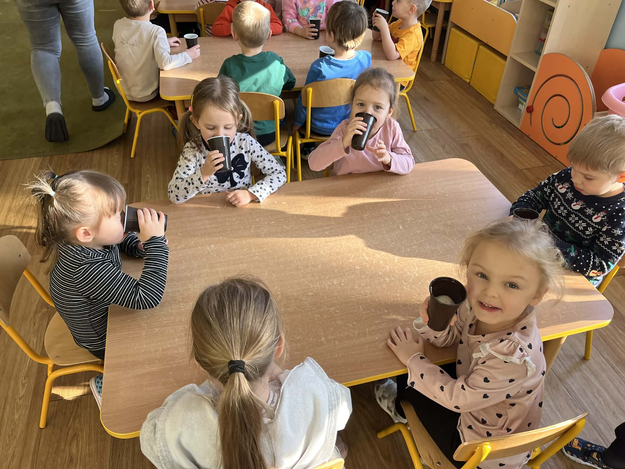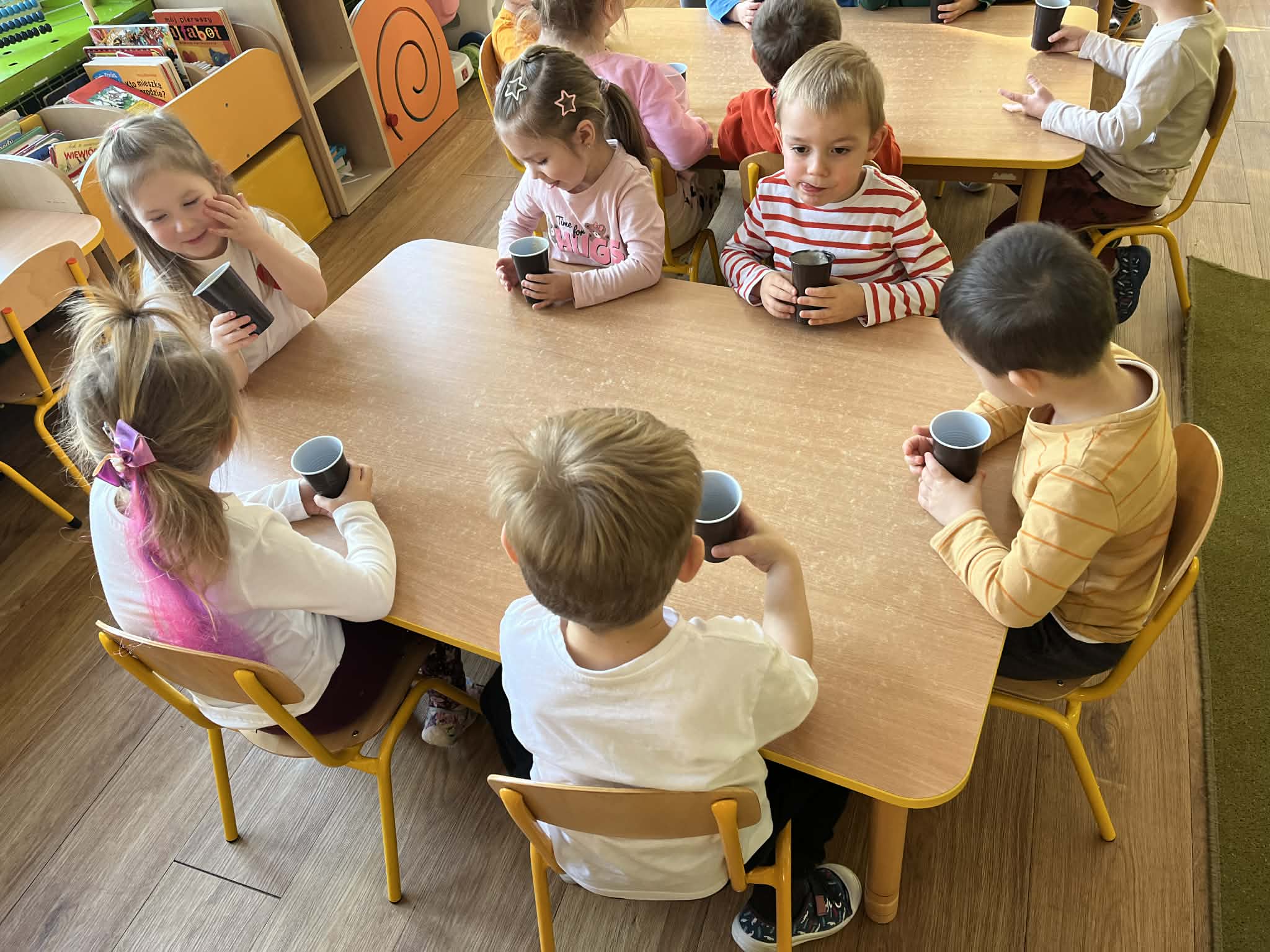 Dzieci z ogromnym zaangażowaniem uczestniczyły w zajęciach i z radością degustowały własnoręcznie przygotowane napoje.