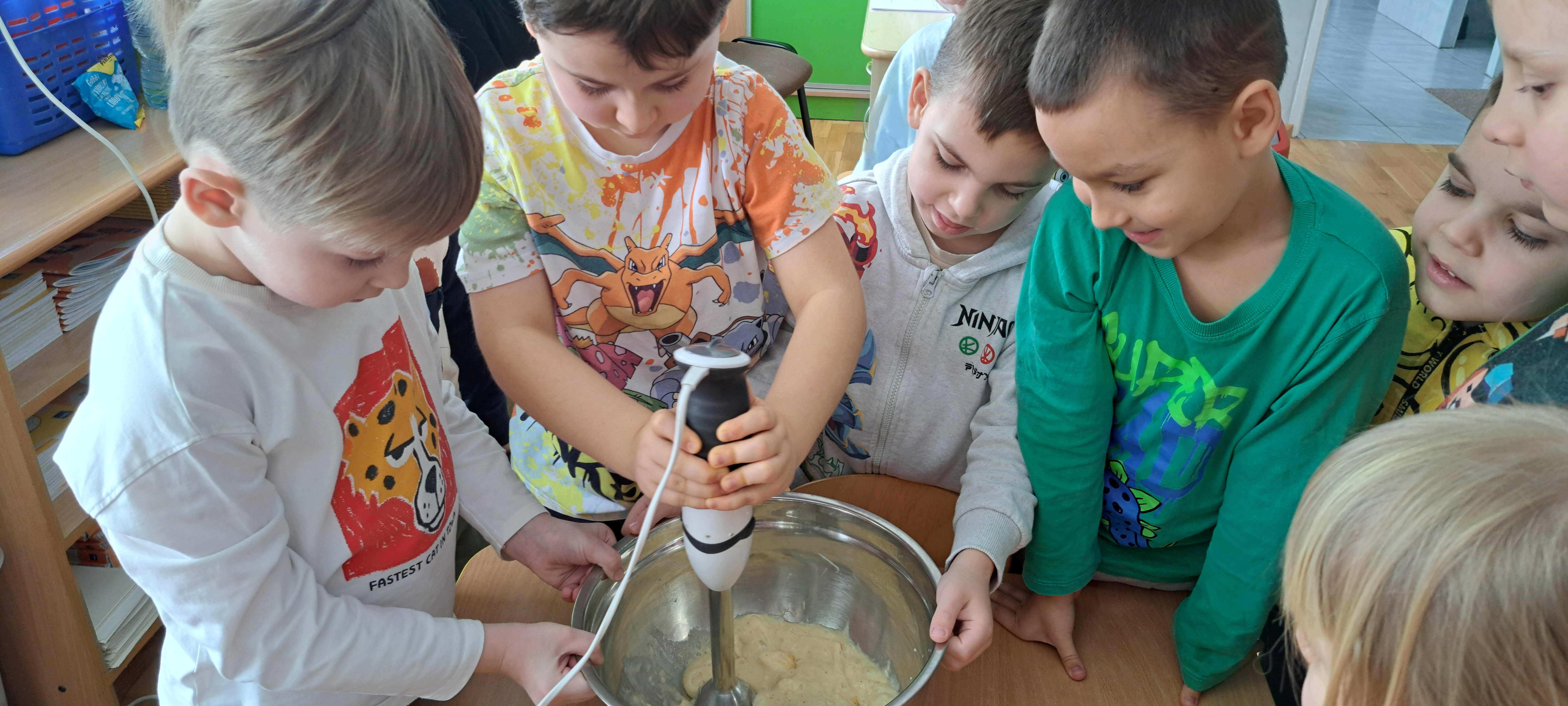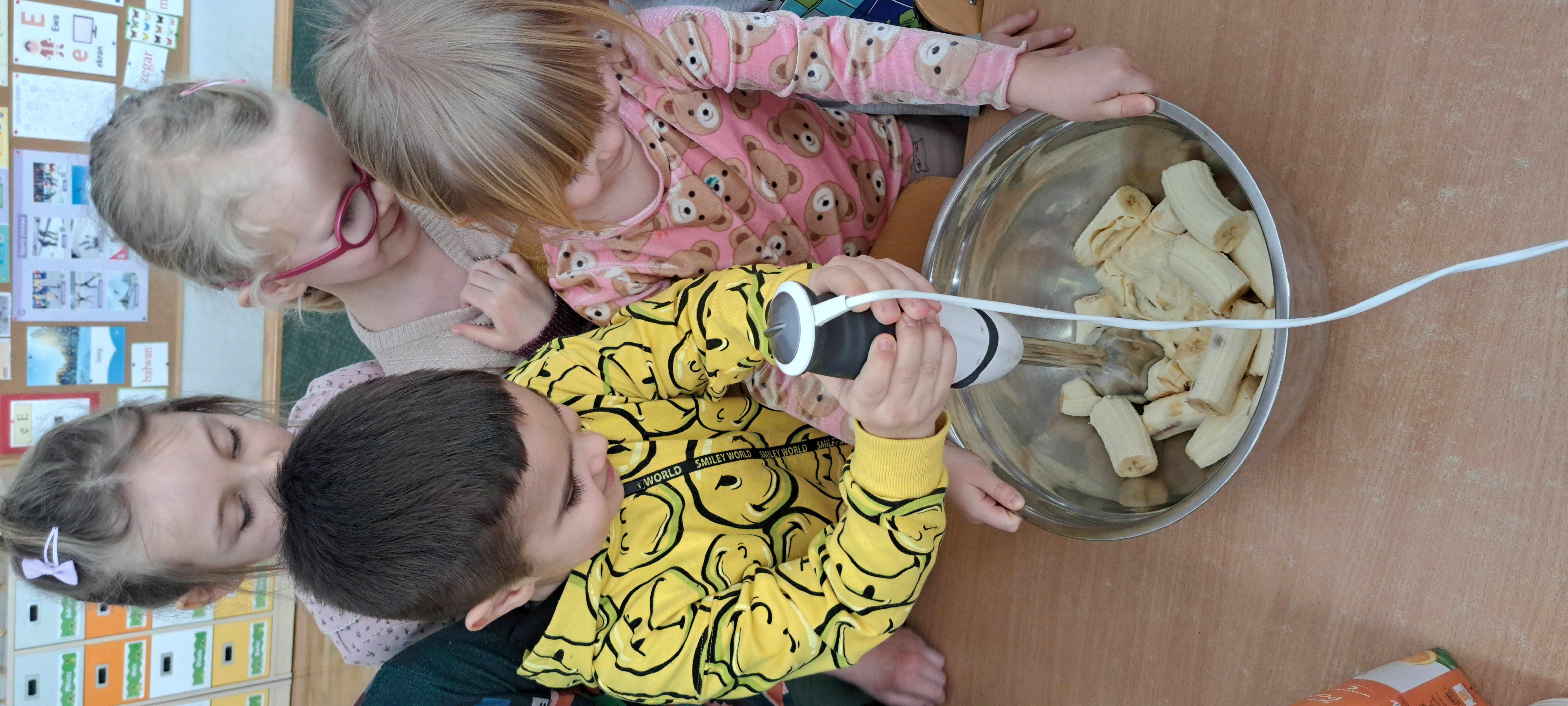 Dzieci z grupy Motylków oraz Żabek miały okazję wcielić się w rolę małych kucharzy i samodzielnie przygotować pyszne koktajle owocowe z dodatkiem mleka